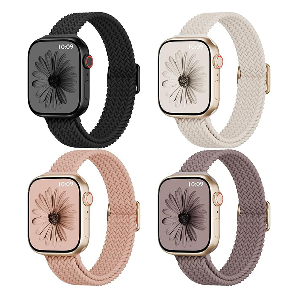 4 Pack Slim Braided Stretchy Bands For Apple Watch Band 38mm 42mm 40mm 41mm Women Men