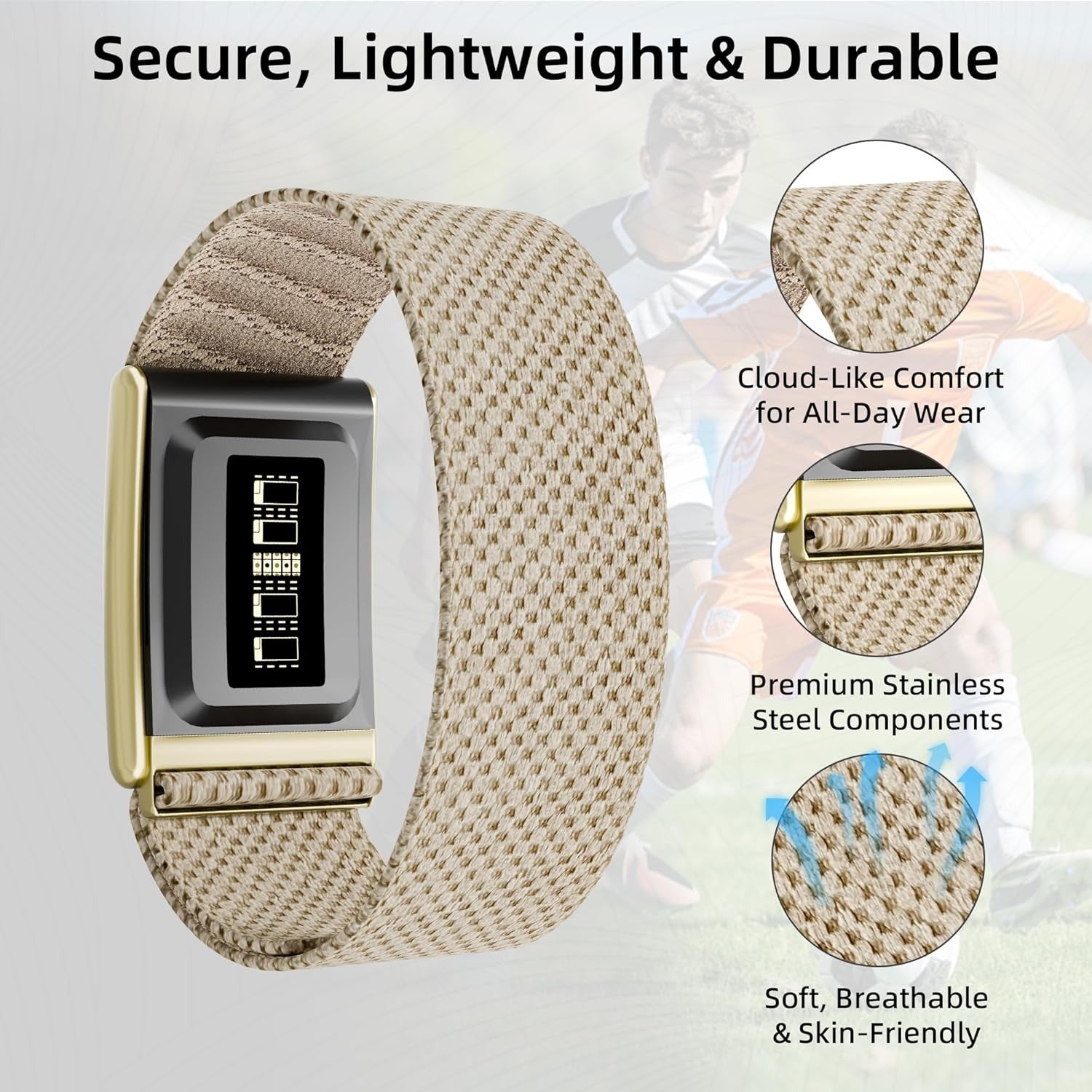 Made from high-quality stretchy nylon, this sport band is ultra-soft, lightweight, and gentle on the skin, making it ideal for all-day and overnight use. The breathable woven design promotes airflow and helps reduce sweat buildup during workouts, training sessions, and daily activities.