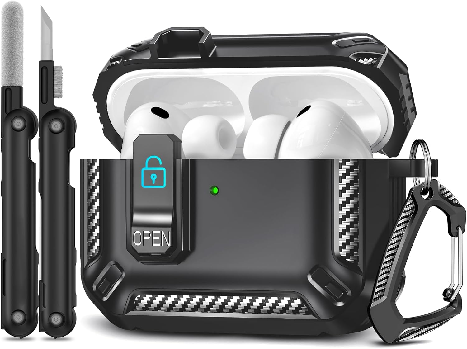 AirPods Pro 3 Case (2025 New), Secure Lock Cases Cover with Cleaning Kit & Keychain -Black