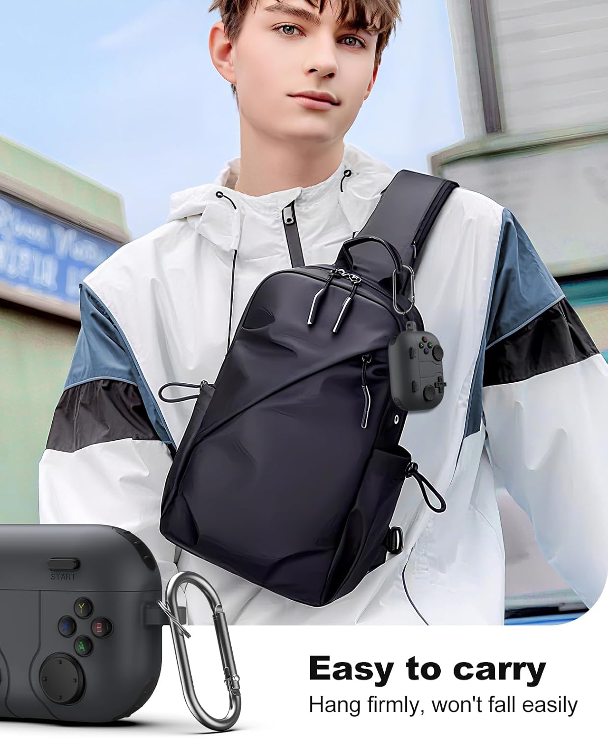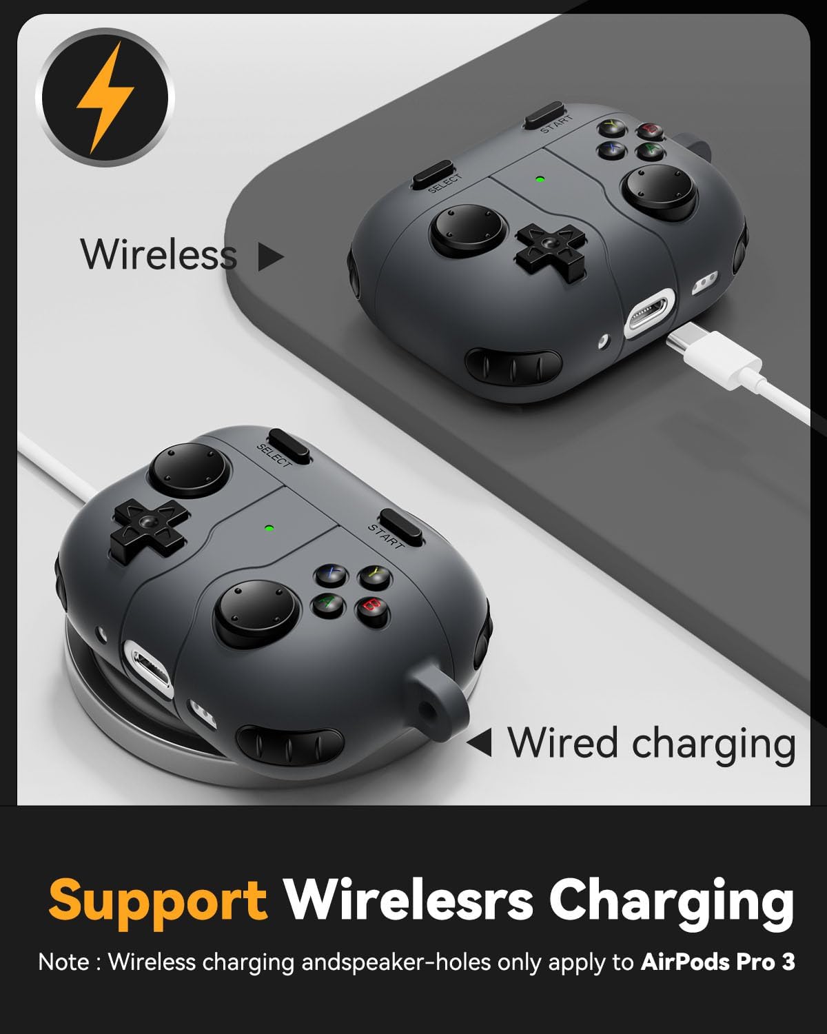 Game Console-Inspired Silicone Case for AirPods Pro 3rd Generation (2025) – Durable Protection, Wireless Charging Support, Anti-Lost Keychain, and Secure Adhesive