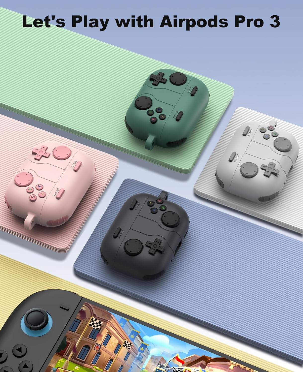 AirPods Pro 3 Case | 3D Game Console Design Silicone Protective Cover with Keychain-Grey