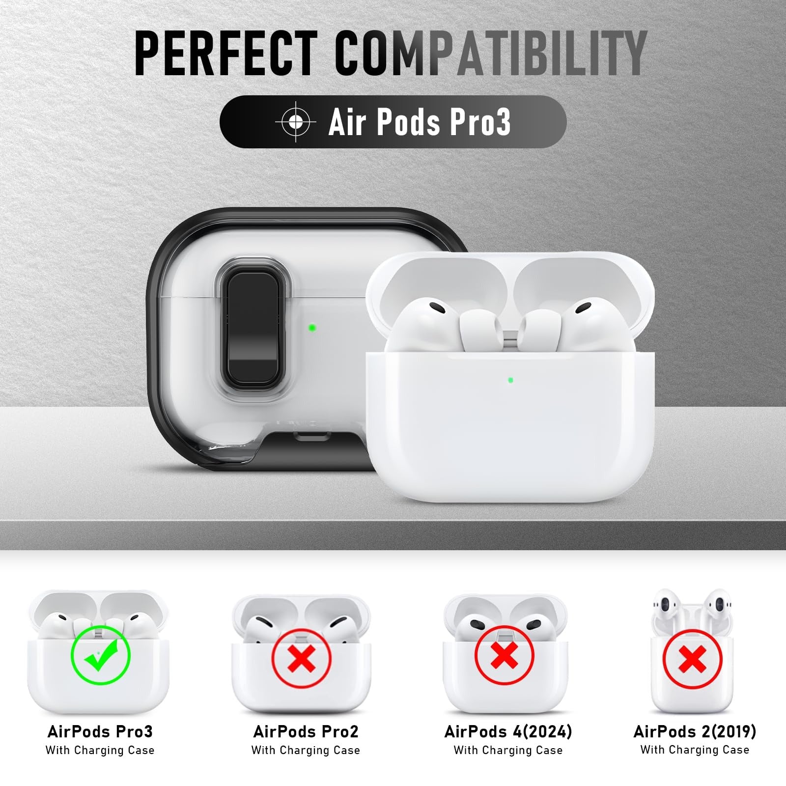 AirPods Pro 3 Case with Phone Stand &Cleaner Kit Protective Cover| TPU + PC Hybrid Cover- Black