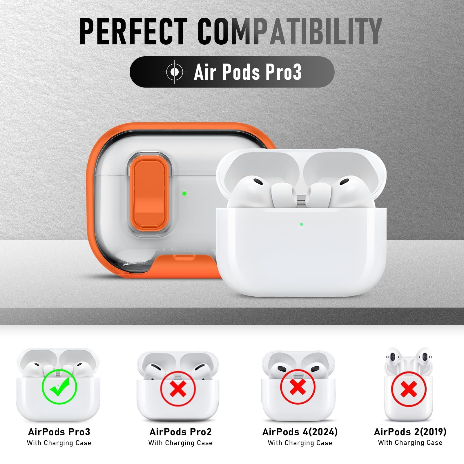 AirPods Pro 3 Case with Phone Stand &Cleaner Kit Protective Cover| TPU + PC Hybrid Cover- Orange