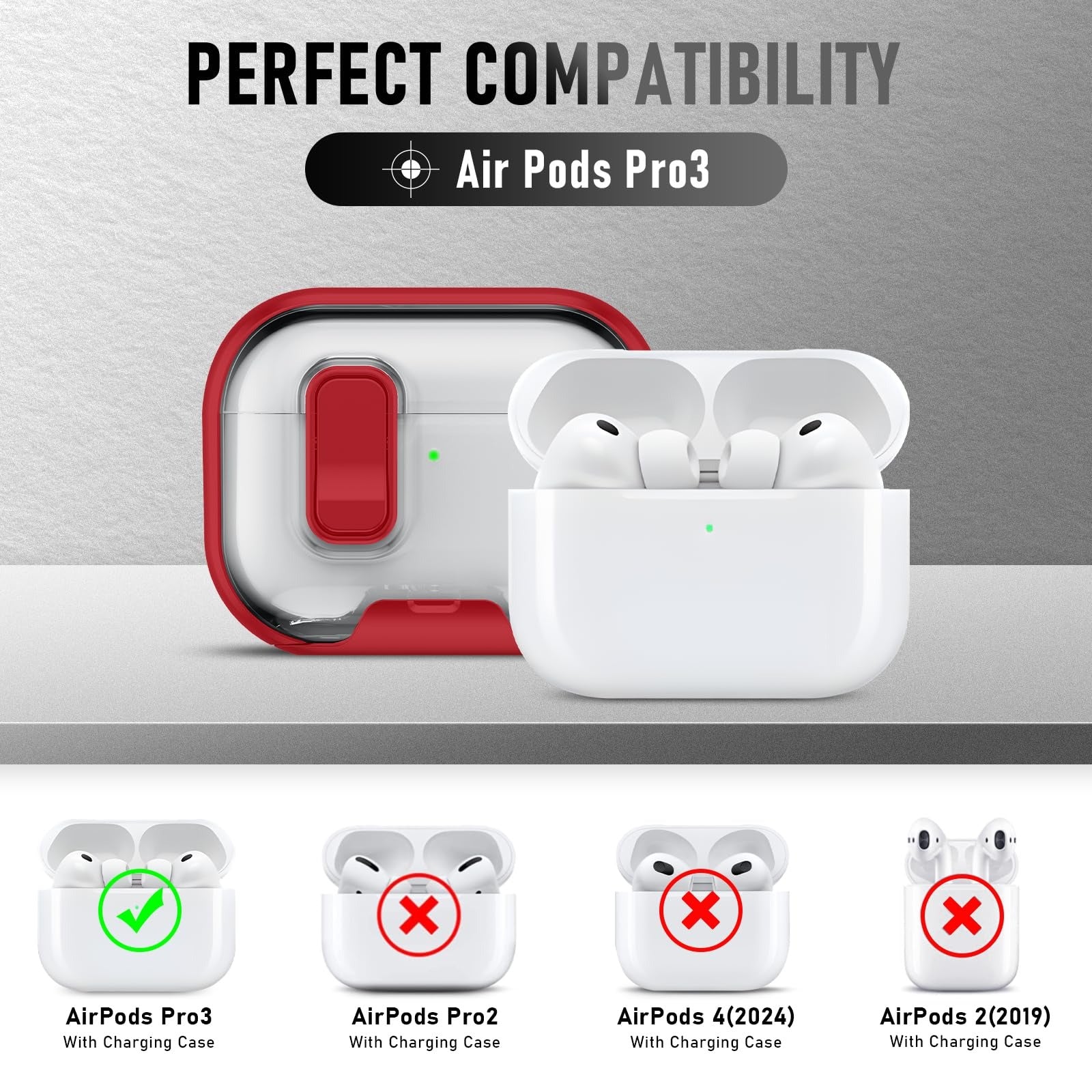 AirPods Pro 3 Case with Phone Stand &Cleaner Kit Protective Cover| TPU + PC Hybrid Cover- Red
