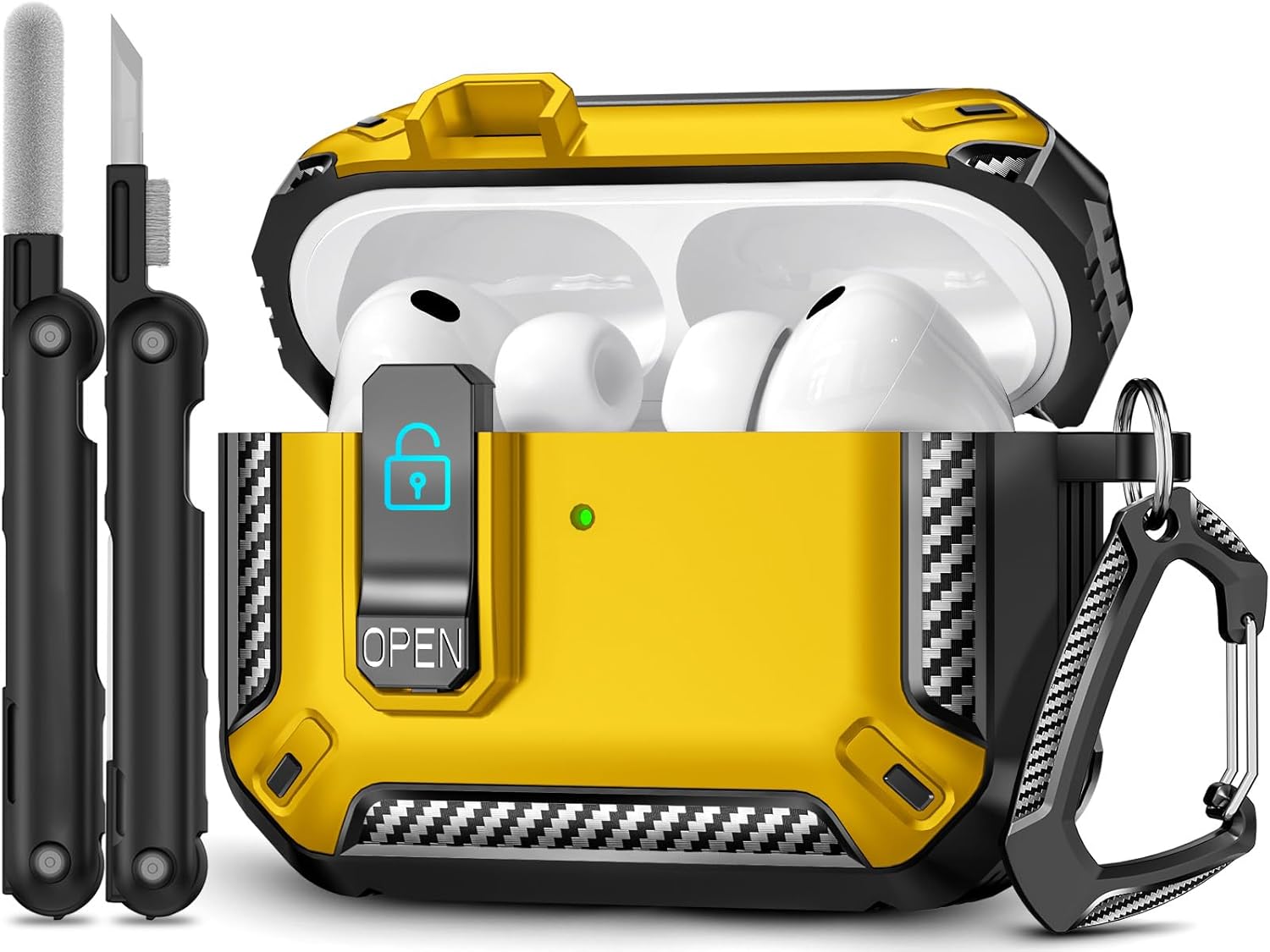 AirPods Pro 3 Case with Phone Stand&Cleaner Kit Protective Cover with Keychain Case-Yellow