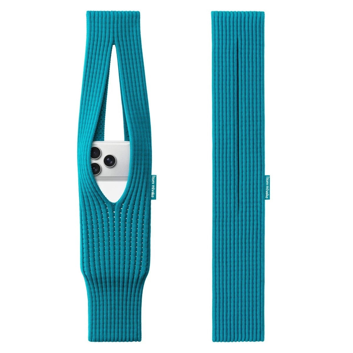 Knitted Phone Pocket Sling Bag Compatible with iPhone 17/16/15/14 |Colorful Crossbody Phone Holder|40 cm Long|Fits Most Smartphone - Light Blue