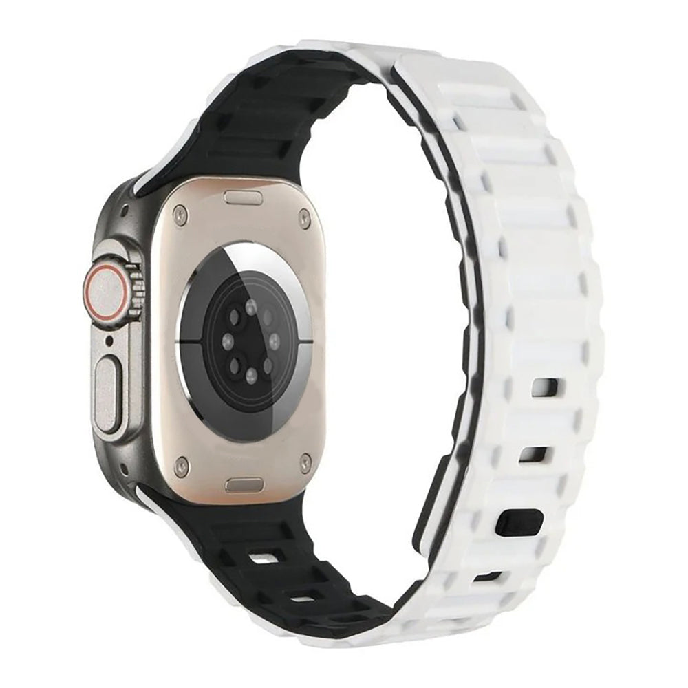 Wide Compatibility with Apple Watch – This magnetic silicone band is specially designed to fit a wide range of Apple Watch models including Series 10, Ultra 2, Ultra, Series 9, 8, 7, 6, SE. Compatible with watch case sizes 42mm, 41mm, 40mm, 38mm making it the perfect replacement strap for your Apple Watch, whether you're upgrading or swapping styles Magnetic Silicone Strap with Anti-Drop Buckle – Crafted with soft, durable silicone and built-in strong magnets for a secure, adjustable fit without the need for clasps. The added anti-drop buckle prevents accidental slips, keeping your Apple Watch safe during workouts, travel, or daily activities. Ideal for those seeking a reliable, sweatproof sport band with all-day comfort and modern style. Premium Quality Silicone – Made from high-grade, skin-friendly silicone that resists sweat, water, and daily wear. Lightweight and breathable design ensures all-day comfort for workouts, office, or casual use. Perfect for fitness lovers, travelers, and professionals seeking a durable, flexible Apple Watch sport strap. Easy Installation – Designed with precision connectors that securely lock into your Apple Watch in seconds. Easily swap between different straps to match your style. No tools or extra steps required. A perfect strap upgrade for anyone who values convenience, versatility, and secure fit in a magnetic Apple Watch band.
