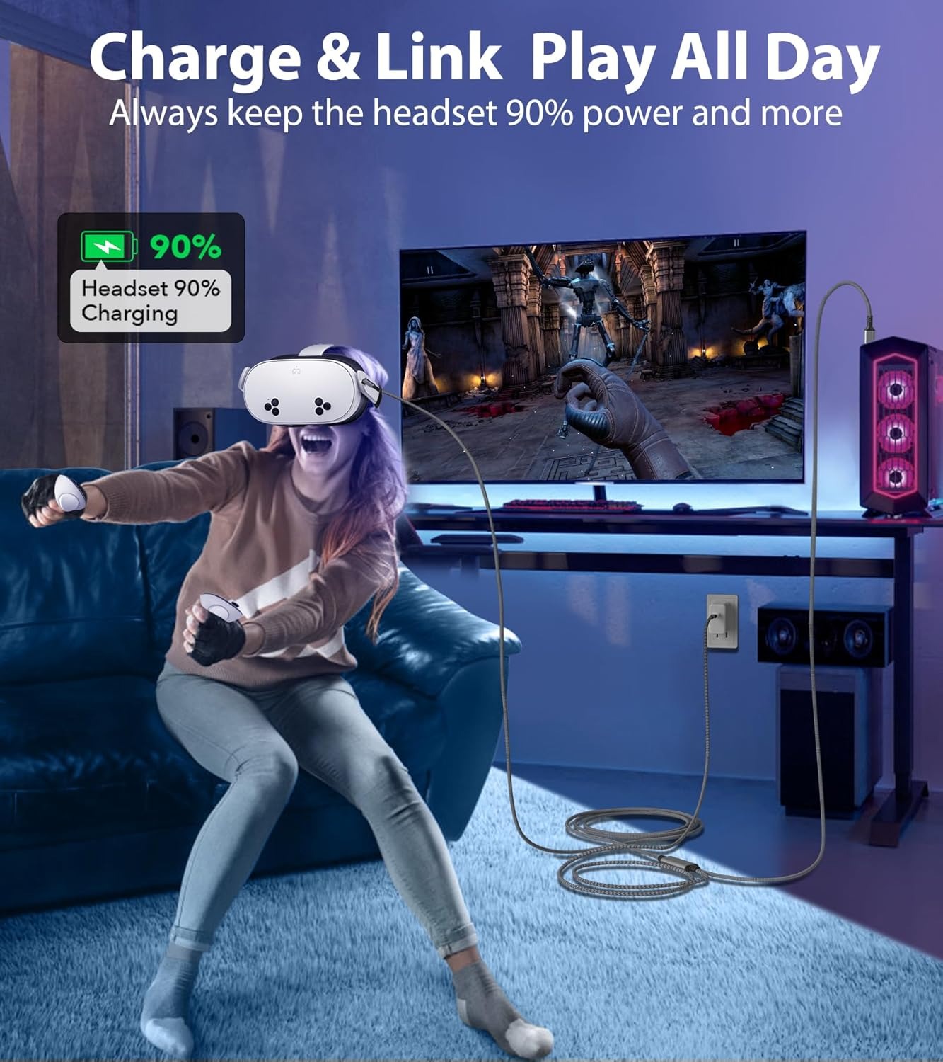 Perfect for gamers who want a fast, durable, and tangle-free VR link cable for Meta Quest headsets and Steam VR.