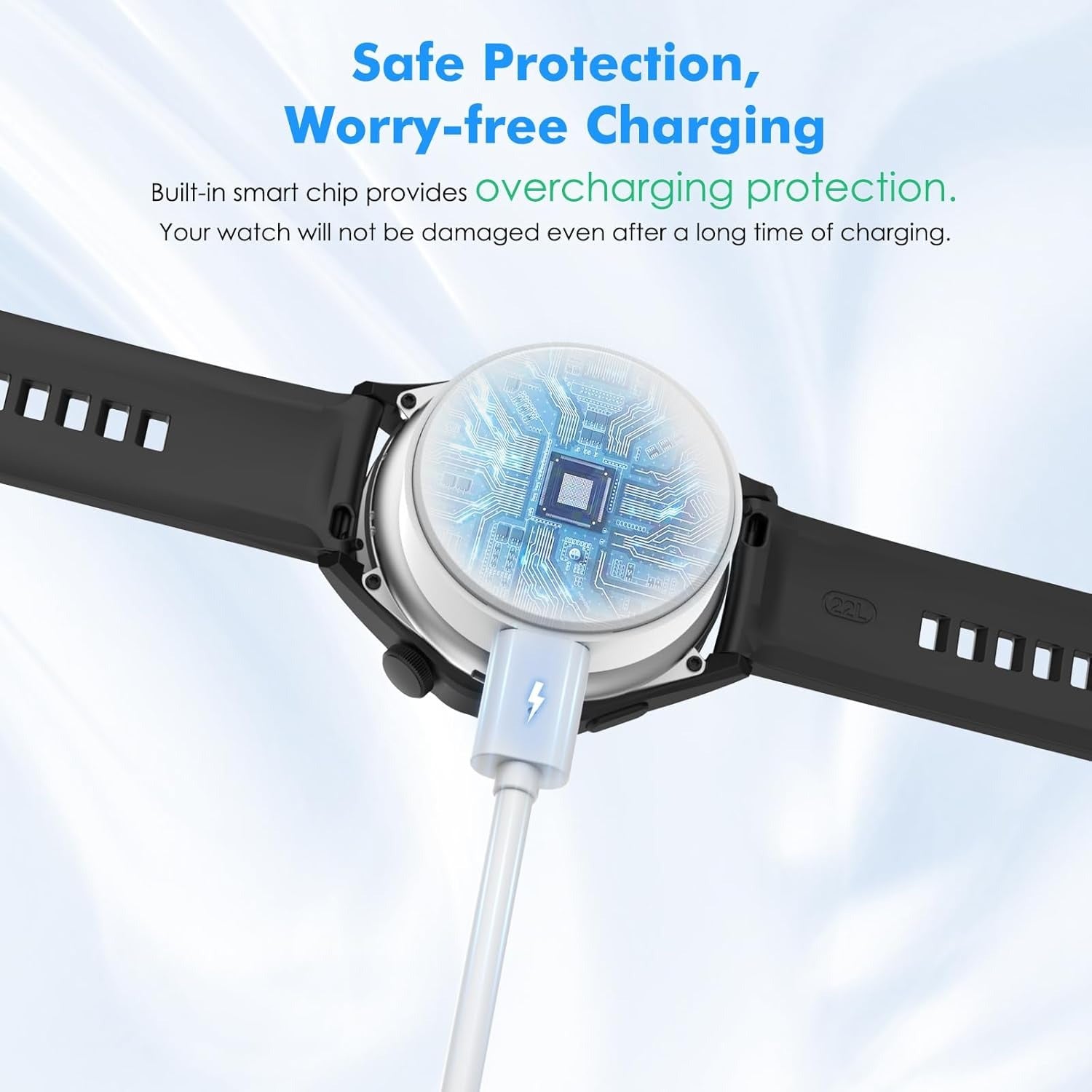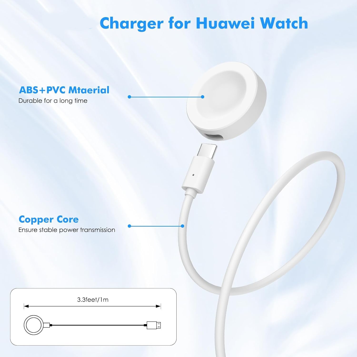 Wide Compatibility: Designed for smartwatches including GT 5, GT 5 Pro, GT 4, GT 3, GT 3 Pro, GT 3 SE, GT 2 Pro, GT Cyber, GT Runner, Watch 4/4 Pro, Watch 3/3 Pro, Ultimate, Buds, and D/D2. Compact & Travel-Friendly: Lightweight and detachable cable design makes it easy to carry and store, perfect for home, office, or business trips. Durable Construction: Made from high-quality ABS+PVC with copper wiring for stable power delivery. Tangle-free 1M TPE cable is foldable and built to last. Magnetic Charging Dock: Strong magnetic attachment ensures a secure and aligned connection for easy, hassle-free charging via USB port. Safe & Stable Charging: Built-in voltage regulator with protection from overcurrent, overcharging, and short-circuiting keeps your device safe during every charge.