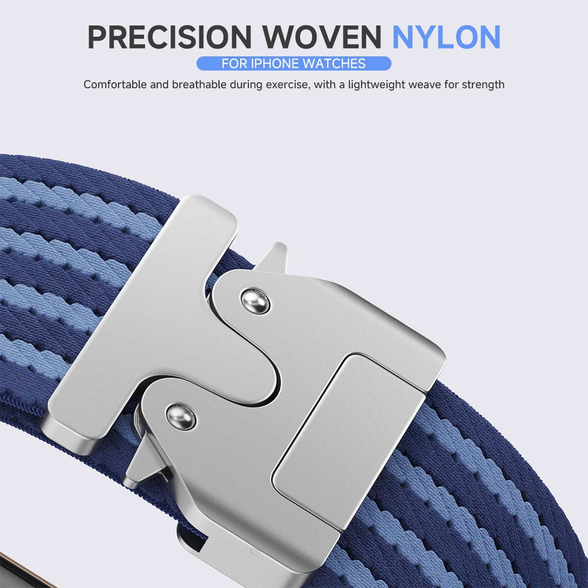 Wide Compatibility: O Ozone Elastic Sport Bands compatible with Apple Watch Ultra 2 Ultra 49mm, Series 10 46mm, Series 9 Series 8 Series 7 45mm, SE 2 SE Series 5 Series 4 44mm, and Series 3 Series 2 Series 1 42mm. It ensures a perfect fit for your device. Skin-friendly& Stretchy Nylon Material : The elastic sport band for apple watch bands for men women is made from soft stretchy skin-friendly nylon materials,durable, breathable,lightweight,no fading,drying fast and easy to clean,preventing skin from irritation and comfortable fit for everyday wear.Suitable for wearing in various occasions,like running,climbing,outdoor sports and housework,bussiness,office Upgraded Parachute Style Clasp : Parachute Buckle for Apple Watch Ultra 2 Titanium Nylon Band,The buckle close is not smooth to wear.To solve this problem, we use the elasticity of nylon material to solve the problem of insufficient length when buckling.Parachute Style buckle ape watch band is made of lightweight titanium metal,ensuring a stable and comfortable wearing,From this, Wide Strap for Extra Comfort : Featuring a wider-than-standard strap, this band distributes pressure more evenly across your wrist—reducing strain during long periods of wear and providing added support during sports or everyday use Easy Installation/Adjustable : The stretchy bands for apple watch ultra 2 bands for men have watch lugs on both ends, which locks onto your i watch precisely and securely.Only takes one second to Close/Open the Buckle closure to Install/Take off the iphone watch bands,easy installation and one button removal.