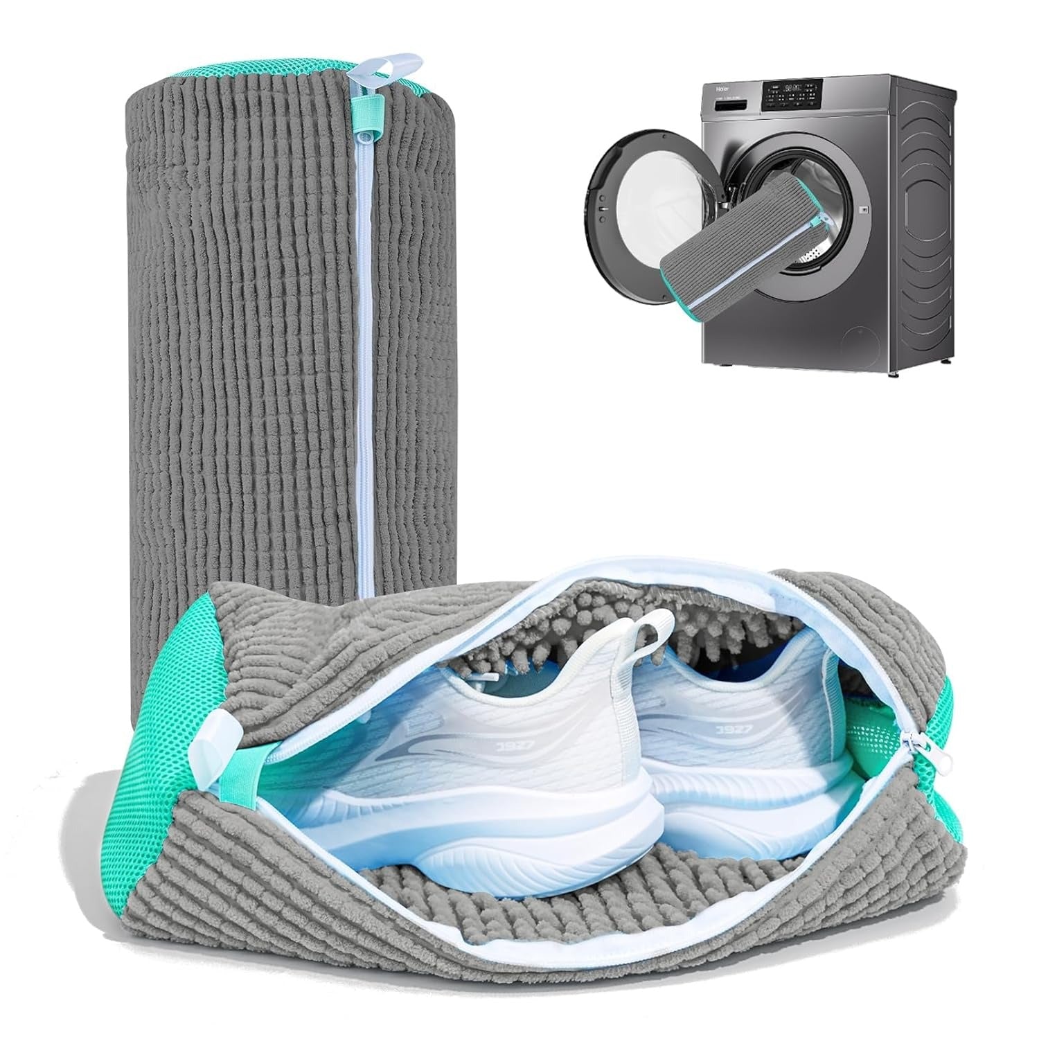 Machine Washable Shoe Bag – Easily clean your shoes in the washer without hand scrubbing. This laundry shoe bag protects both your footwear and the washing machine, making cleaning faster and more efficient. Premium Material – O Ozone shoe washing bag is made of Premium polyester nylon material and is reusable. Our shoe washing bag can provide excellent protection for your shoes, will not cause any damage to your shoes Durable Zipper with Protective Cover – Features a strong nylon zipper with a safety lock to keep shoes securely in place. The added zipper cover prevents scratching your washer and extends the life of the bag. Noise-Reducing Design – Plush microfiber interior absorbs movement and sound, reducing banging and impact during wash cycles. Helps prevent damage to shoes and the washing machine drum. Fits Most Shoe Sizes & Styles – Compatible with sneakers, trainers, casual shoes, and kids’ footwear. A versatile laundry solution perfect for active families and frequent travelers.