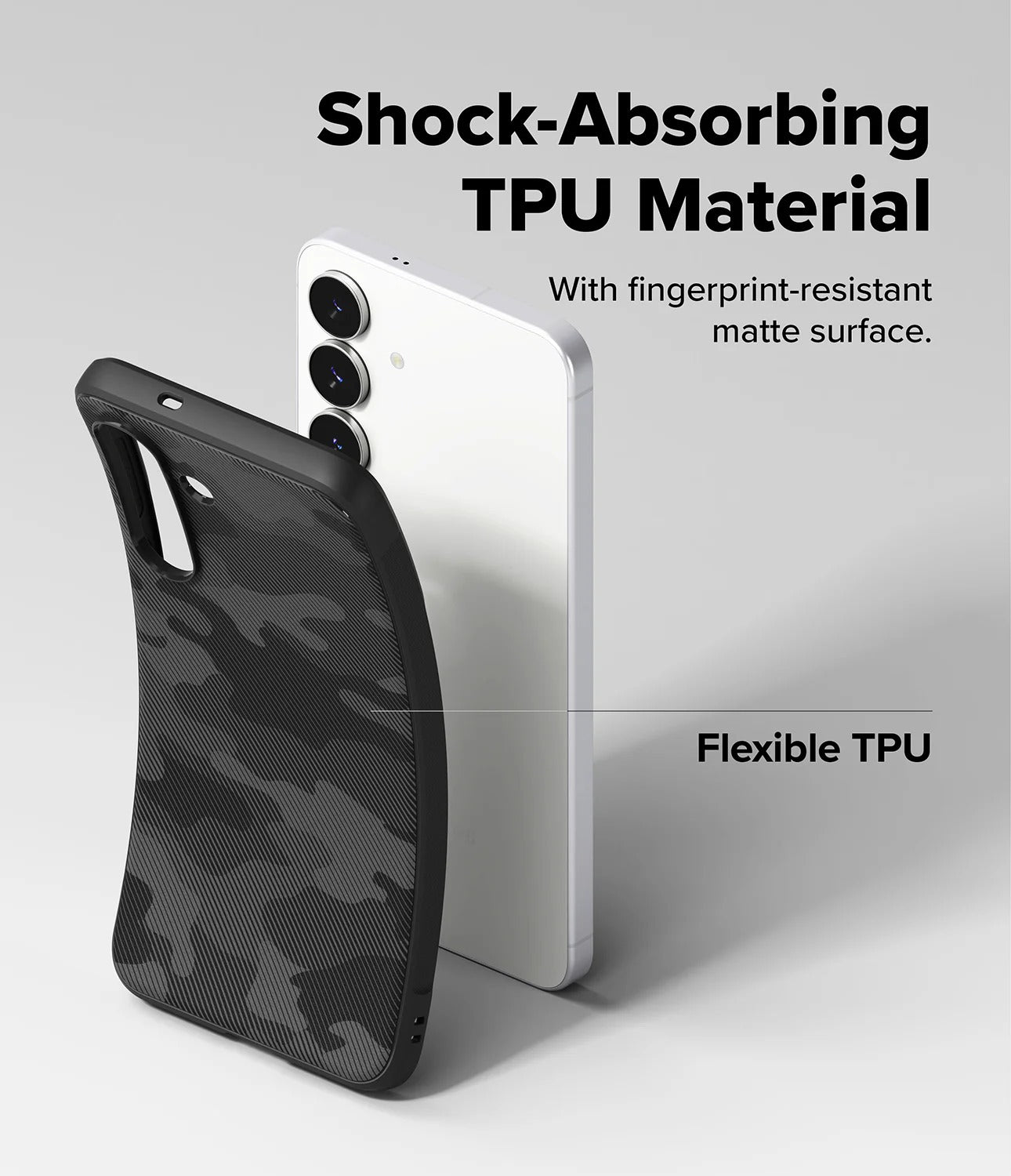 Ringke Onyx is the newest and latest style in our rugged line of defense. New impressive design features premium, tough pliable TPU material for heavy duty defense and textured layout with a mechanical design complete with Military Grade MIL-STD 810G - 516.6 drop protection. Precision-cut TPU profile improves the slim appearance of your phone with a tough outer flexible protective layer closely contouring each edge and curve of your device. The precise slim fit stays perfect and true to preserve all the premium profile. Secure your screen with protection against daily use scratches and nicks without any unnecessary hassle or bulk. Highly durable specialized thermoplastic urethane material case is perfectly compatible and secures your device in a comfortable flexible fit for optimized protection against scratches or scrapes. Super thin and lightweight, there's no chance in weighing down or bulking up your slim device. Full degree protection covers all four corners and side edges on your new phone. Precise and smooth cutouts give comfortable access to all your much needed function ports and buttons. A slim raised front lip also protects your screen from touching the flat surface and rear camera is protected with a back tapered lip. Made from flexible, long-lasting TPU for heavy-duty defense Grip enhancing circular emboss sides and sleek button covers provide extra protection Unique matte, granulate texture is anti-skid and anti-fingerprint Attach hand or neck straps with the built-in dual QuikCatch lanyard holes (Strap sold separately) Supports wireless charging and PowerShare; Compatible with most screen protectors Brand : Ringke Compatible Devices : Galaxy S25 FE