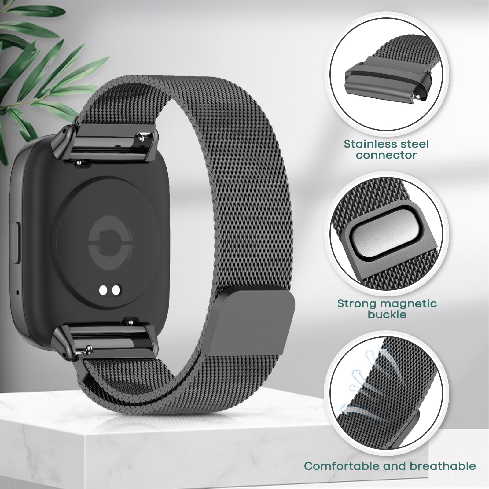 Perfect Compatibility: O Ozone Milanese stainless steel mesh metal watch bands are perfectly compatible with Redmi Watch 3 Active/Redmi Watch 3 Lite. Please check your watch model carefully before purchasing. High Quality Metal Material: Our Mi Strap is made of high-quality stainless-steel material, high stainless steel mesh loop makes the bracelets soft, the excellent polishing technology makes the bracelet smooth and avoids scratching skin or clothing. Breathable, durable and stylish look, a comfortable feel you can wear it all day. Upgrade Magnetic Clasp: Designed with a strong magnetic lock, the bracelet has strong magnetic clasps, simply stick the magnetic closure to attach your watch securely to the wrist, do not worry about falling off. Easier to adjust the length of the bracelet. Watch strap fits most wrists, no worry, whether you have large or small hands, it is suitable. Easy To Install: Quickly connect the band to your Redmi Watch 3 Active/Redmi Watch 3 Lite smartwatch by pressing and holding the button on the back of the watch and inserting the connector into the watch. Perfect Gift: Multi-colored magnetic mesh strap for your choice, excellent clothing matching piece to make your smartwatch more personalized in your work and daily life. It's also a great gift for birthdays, Valentine's Day, Christmas, Thanksgiving and other holiday.