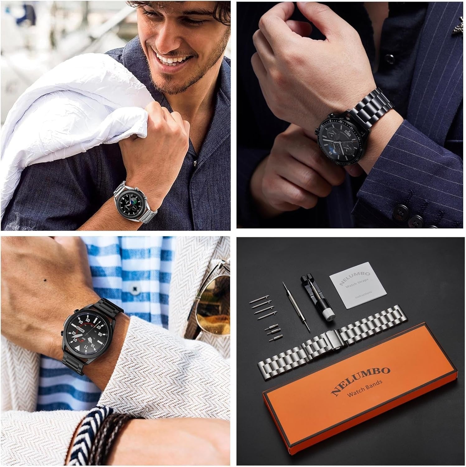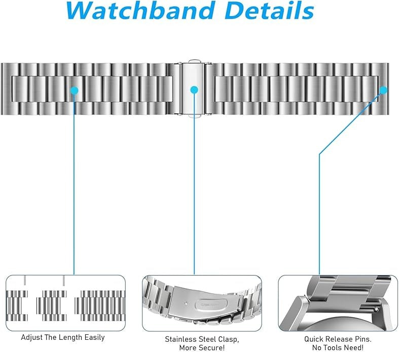 O Ozone Metal Bands for Samsung Galaxy Watch 3 (45mm Top Quality Material: - Crafted from high-performance stainless steel - Features advanced metal drawing and smooth surface technology - Professional vacuum coating for a luxurious finish - High hardness, corrosion resistance, and wear resistance for long-lasting use - Comfortable feel for all-day wear Easy Installation: - Comes with a strap removal tool for effortless adjustments - Easily disassemble and install the strap to fit your wrist size Extraordinary Design - Double folding buckle design for secure wear - Easy to put on and take off Versatile for All Occasions: - 22 mm width suitable for both men and women - Perfect for leisure, daily life, sports, and casual business settings Sport-Ready Comfort: - Breathable mesh structure suitable for various sports activities - Sweat and water-resistant, lightweight, and quick-drying - Durable material prevents skin irritation for a comfortable experience Package Content : 1 x Metal Band for 22mm watch straps