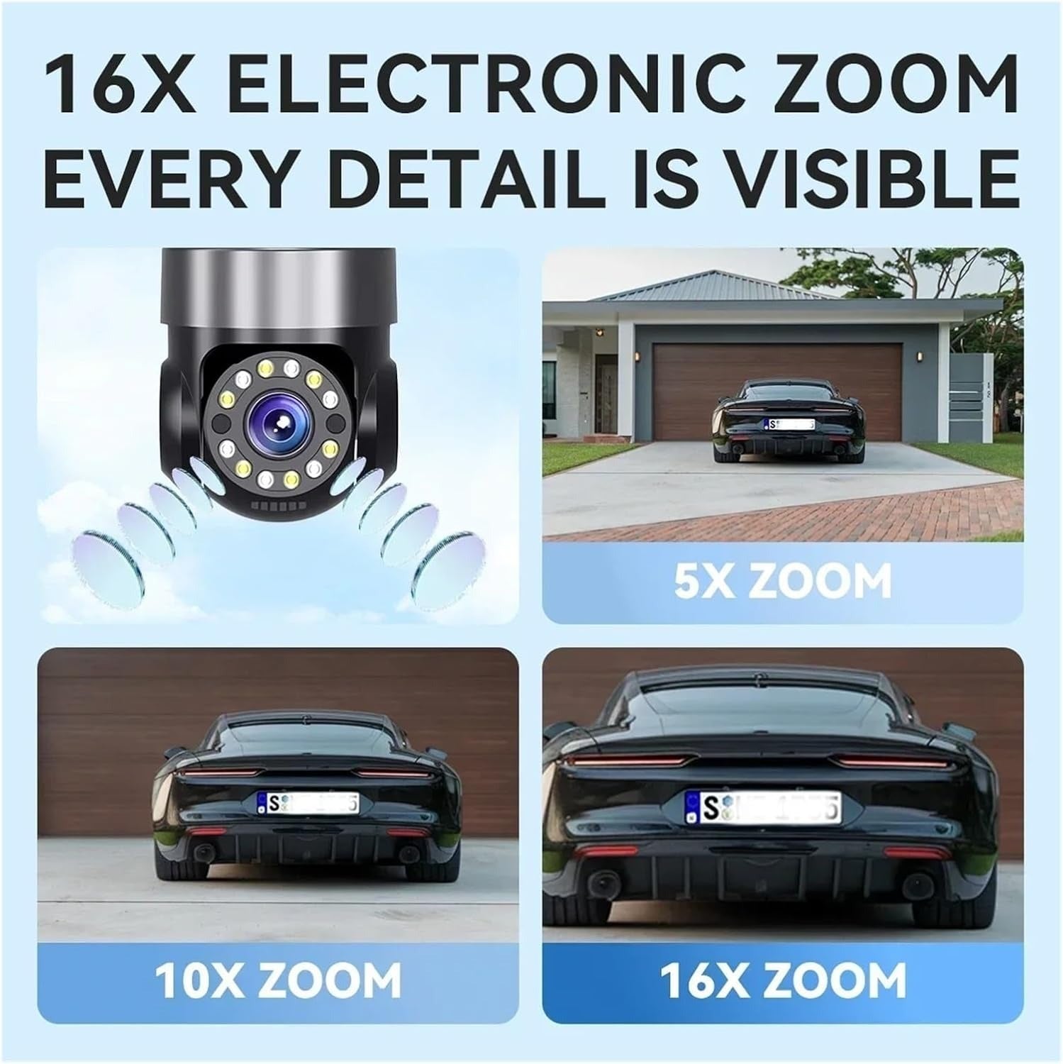 360° AI PTZ WiFi Camera – 4-Lens, 16x Zoom, Waterproof