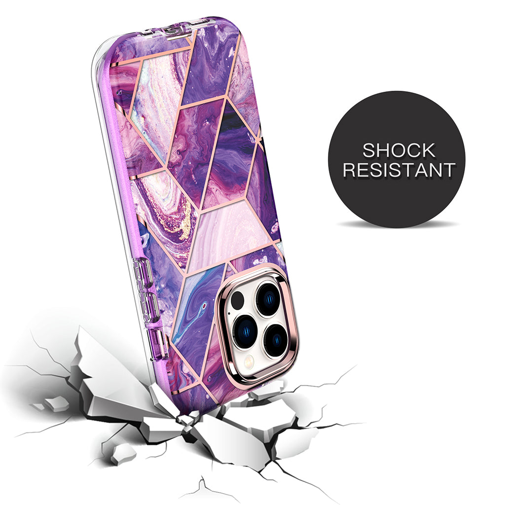 Apple iPhone 13 Pro Max Case | Marble Shockproof Bumper Stylish Slim Phone Cases | Purple Marble