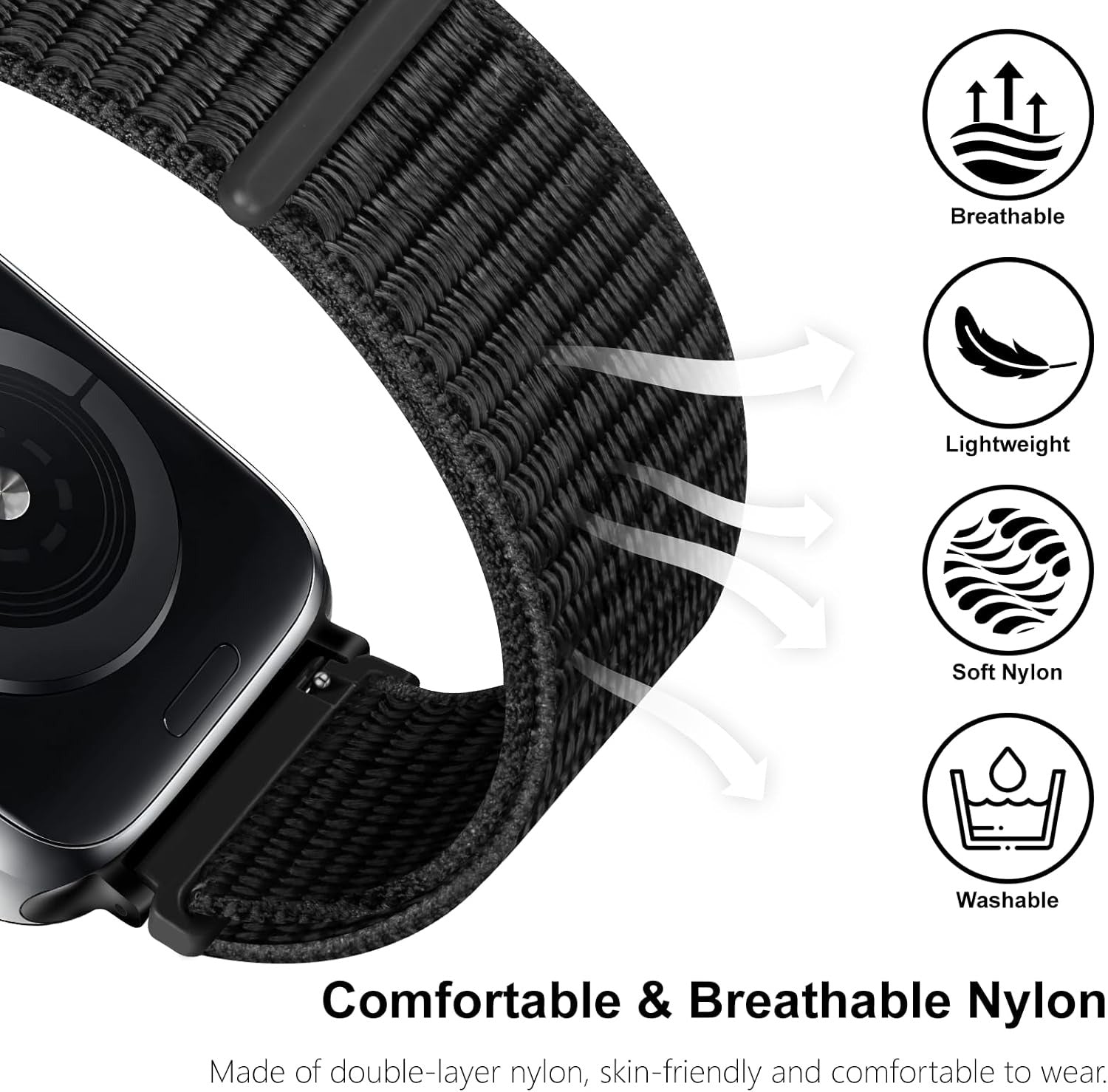 Premium Material O Ozone solo loop straps made of premium woven nylon with double layer, a natural durable soft and breathable material which prevent skin irritation, this sport band can make your wrist feel lightweght when protecting your apple watch Series 7Easy To Install Simple and easy to install and remove, no tools needed. The quick-release of the bracelet are made with seamless connection technology, slide the pin into the notch of the watch and keep two sides of the connector locked to the watch, push the pin inward, slide the other end inside.Soft Touch Made by premium soft nylon woven material. Skin friendly with no irritation. Simply move the closure to adjust it to the exact size of your wrist. Free size for both women and man in most occasions.Rough and Tough Smooth finish for a sporty look, strap can be used for any sports activity, replacement band lets you track all your sports activity in any weather conditions. Perfect for all occasions and festivals. An ideal gift for person who uses the watch.Multiple Compatibility Strap Compatible with Apple Watch 38mm 40mm 41mm Replacement Wristband for iWatch Band for Apple Watch Series 8/7/6/5/4/3/2/1/SE