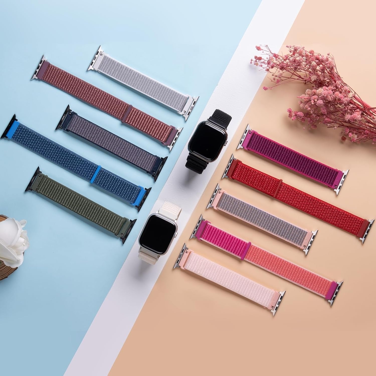Premium Material O Ozone solo loop straps made of premium woven nylon with double layer, a natural durable soft and breathable material which prevent skin irritation, this sport band can make your wrist feel lightweght when protecting your apple watch Easy To Install Simple and easy to install and remove, no tools needed. The quick-release of the bracelet are made with seamless connection technology, slide the pin into the notch of the watch and keep two sides of the connector locked to the watch, push the pin inward, slide the other end inside.Soft Touch Made by premium soft nylon woven material. Skin friendly with no irritation. Simply move the closure to adjust it to the exact size of your wrist. Free size for both women and man in most occasions.Rough and Tough Smooth finish for a sporty look, strap can be used for any sports activity, replacement band lets you track all your sports activity in any weather conditions. Perfect for all occasions and festivals. An ideal gift for person who uses the watch.Strap Compatible with Apple Watch Band 42mm 44mm 45mm 49mm Replacement Wristband for iWatch Band for Apple Watch Series SE 8/ 7/6/5/4/3/2/1, Ultra (No Smartwatch included).