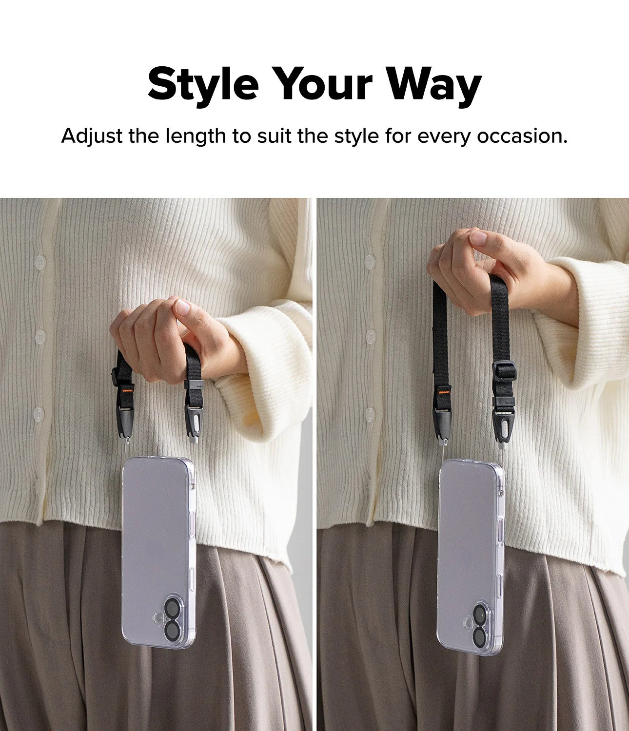 Once you're done with the strap, Ringke's innovative One-Touch Buckle mechanism allows you to easily remove just the strap so you can go without or switch it out for a different strap altogether.
