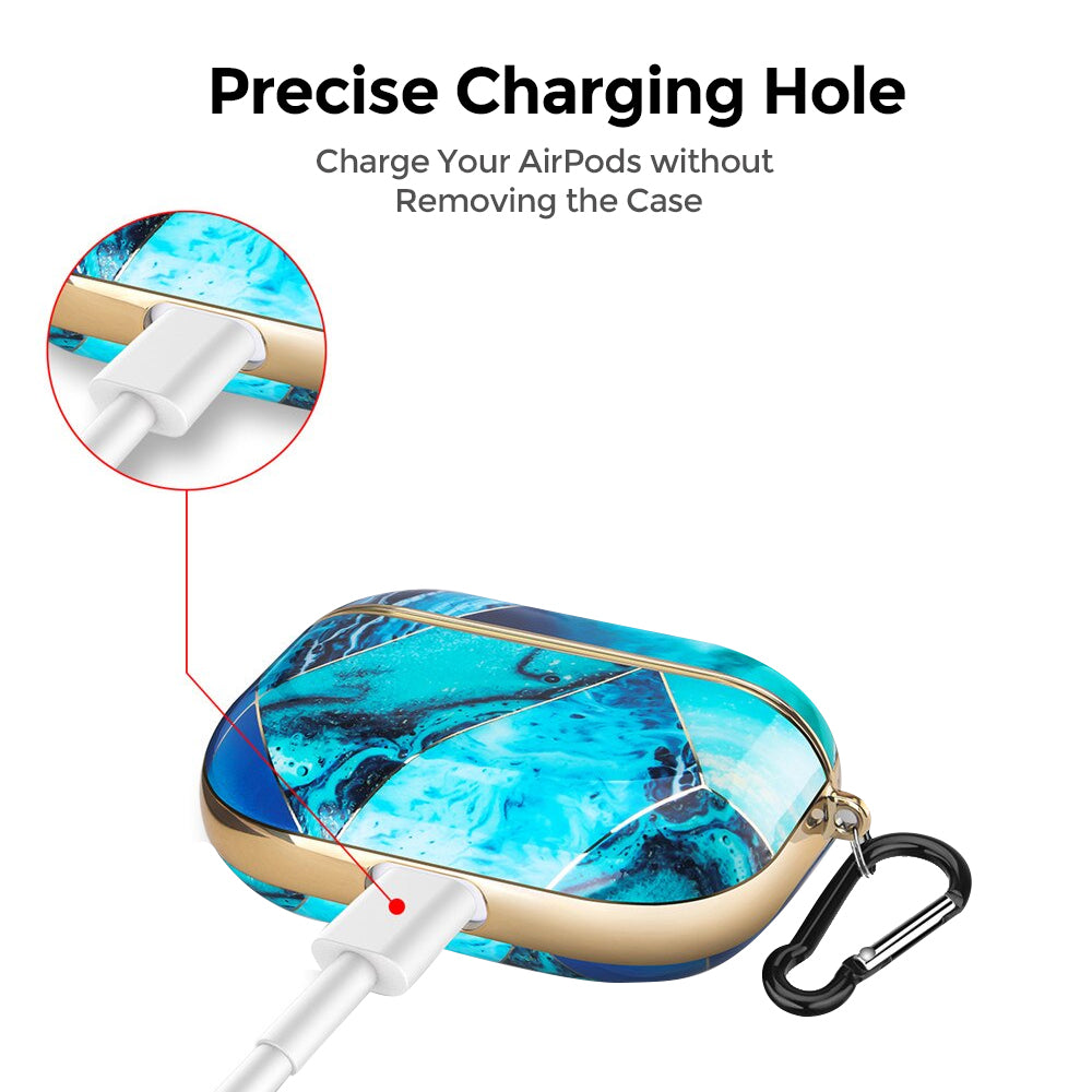 AirPods 3rd Generation 2021 Marble Case|Full Body Protective Cover with Keychain| Blue & Gold