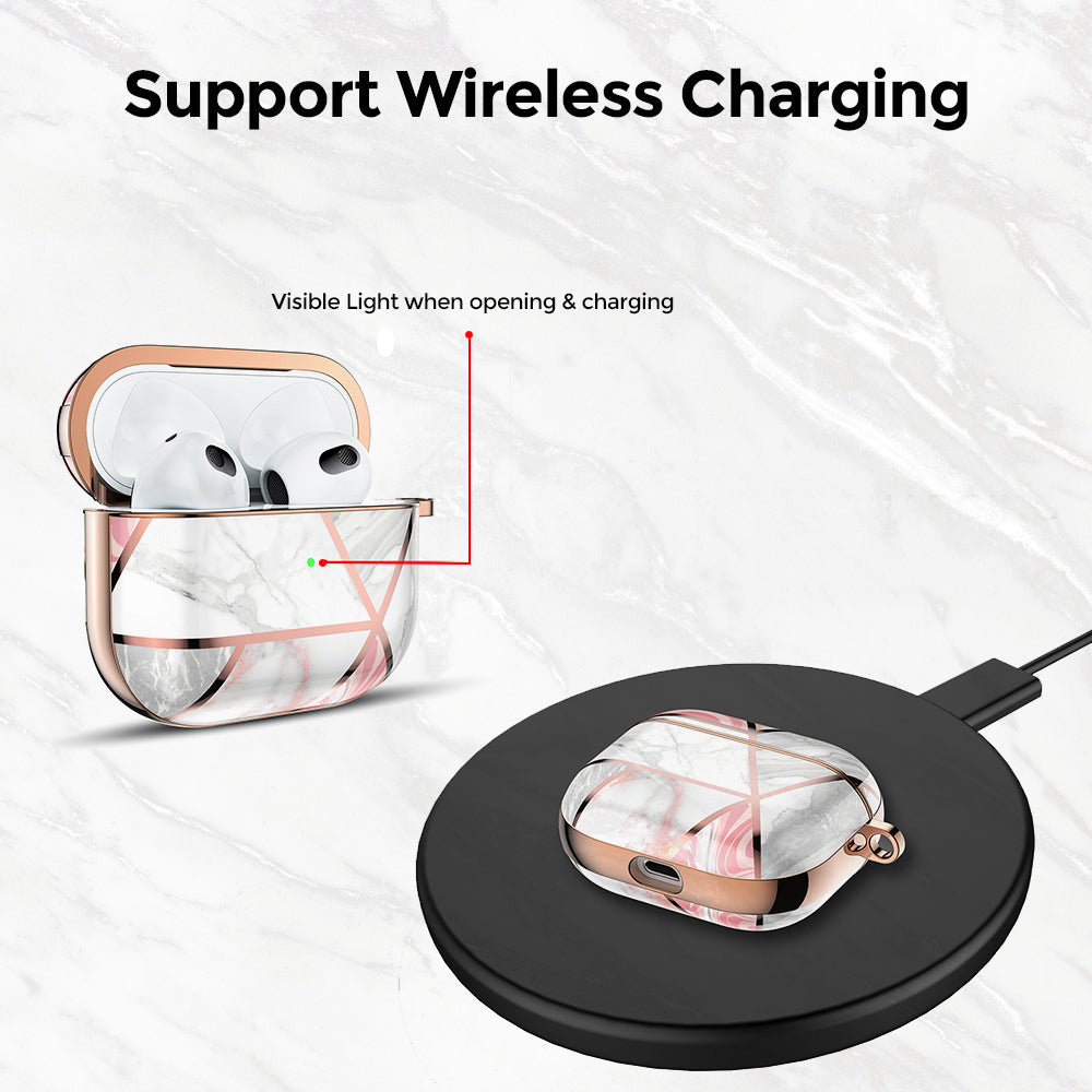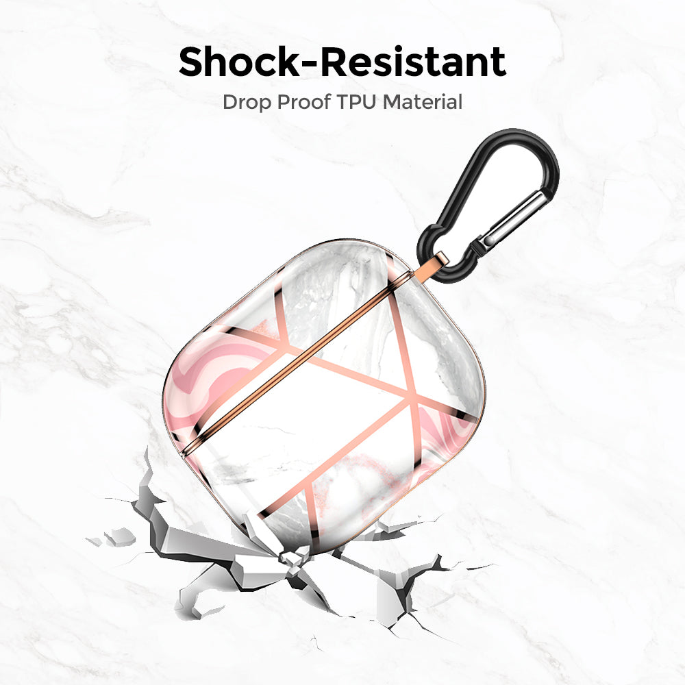 AirPods 3rd Generation 2021 Marble Case|Full Body Protective Cover with Keychain| Rose & Gold