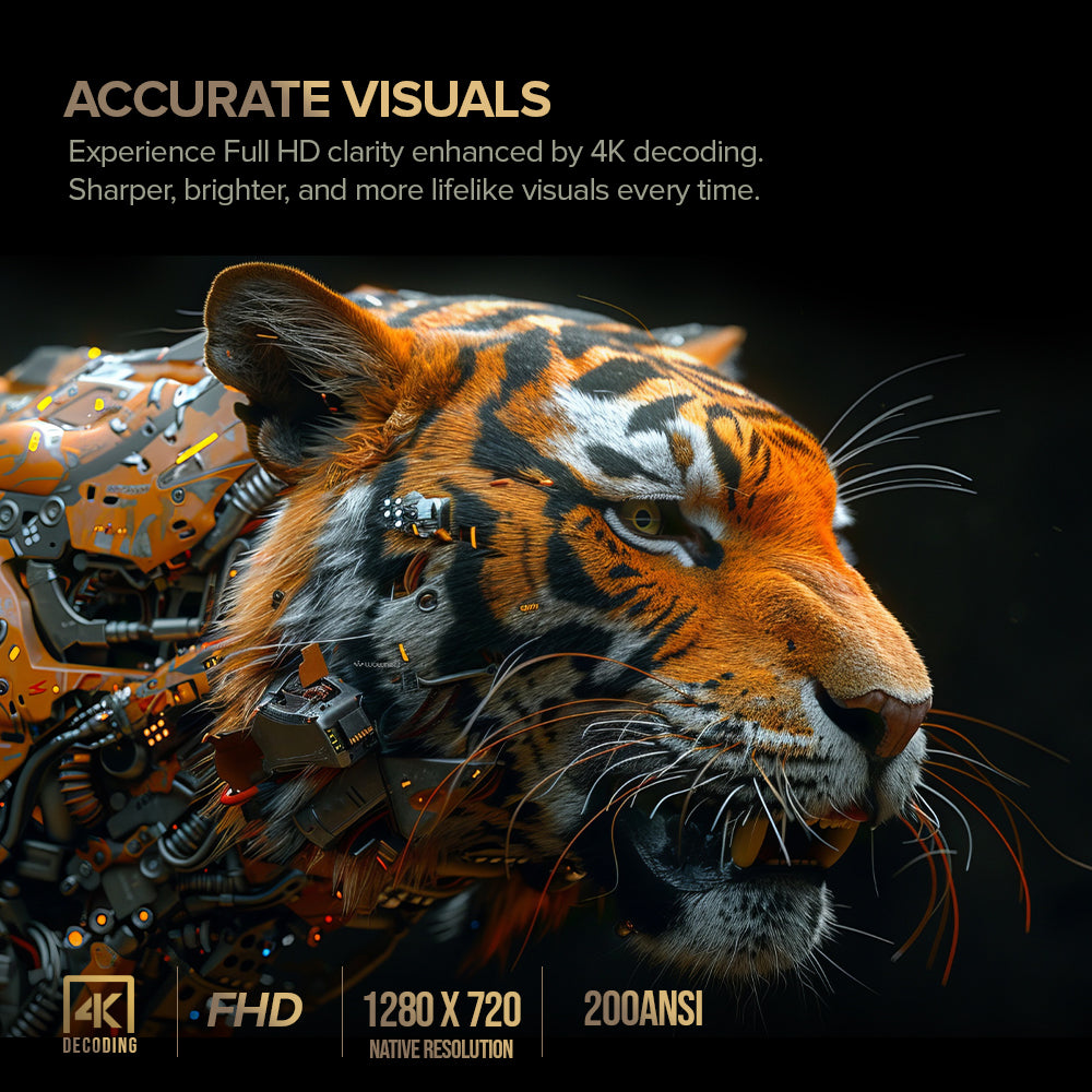 - ✅ HD 720p Resolution with 200 ANSI Lumens Brightness – Enjoy sharp, vibrant visuals with native 1280x720p resolution and 200 ANSI lumens, ideal for indoor home entertainment, gaming, or business presentations in low-light environments.