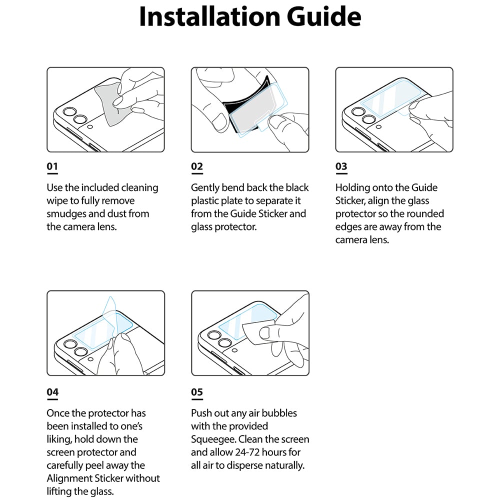 The full-coverage protector is layered with five high-quality materials for maximum strength and performance. The solid glass surface, OCA adhesive, acrylic plate, AB film, and clear adhesive base compound constructs a slim and lightweight camera shell that also provides shatter-resistant safeguard and bubble-free installation.