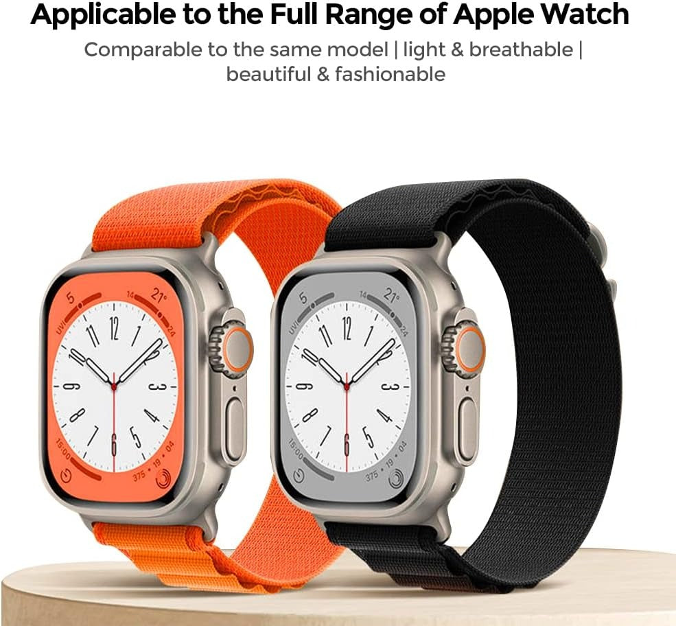 Compatible - O Ozone straps are compatible with Apple Watch Bands 49mm 44mm 45mm 42mm, for Apple Watch Ultra, iWatch SE, Series 8, Series 7, Series 6, Series 5, Series 4, Series 3, Series 2, Series 1. Please check the size on the back of your watch to choose the right size. Stainless Steel G-hook Design - Apple Watch Ultra Band with Rugged Stainless-Steel G-hook Design ensures a secure fit, allow you to adjust the size freely with one hand, and snugly fit your wrist comfortably without constriction. Breathable &Sweat-proof - Apple Watch series 8 band is made from two textile layers woven together into one continuous piece, giving the strap more breathable skin, will keep you dry even when exercising in hot summer, preventing irritating rashes on your skin. Multichoice- Apple Watch Band made of sturdy nylon, the watch will stay unscathed on outdoor adventures, no matter how harsh the environment. Different colors make your band more distinctive Perfect for all occasions and festivals. An ideal gift for the person who uses the watch. Package Include 1 x O Ozone Alpin Nylon Straps