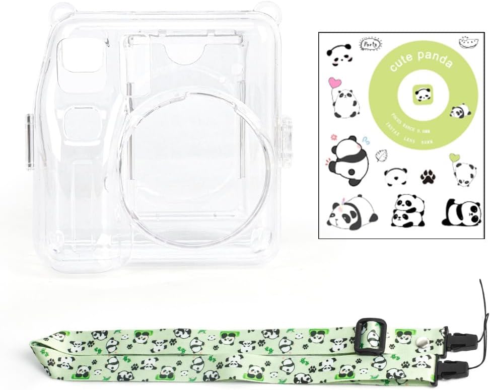 O Ozone Protective Clear Case for Fujifilm Instax Mini SE Instant Camera - Crystal Hard Shell Cover with Upgraded Film Pocket for Storing Photos + Cute Sticker & Removable Shoulder Strap Features: • Clear case is compatible for Instax Mini SE. Crystal clear view design to show off the natural beauty of your camera and your elegant taste. • The camera case has a storage compartment for 10 photos storage, which is convenient for temporary storage of photos when taking pictures. • Made of quality PC material, durable and wear-resistant. The protective cover provides full protection for Mini SE camera, anti-scratch, dust-proof and shockproof. • With colorful shoulder straps, the length can be adjusted as needed, easy to carry out. Also comes with sticker, very lovely and delicate. • Hole position 1:1 correspondence, to protect the camera at the same time does not affect the use of the camera, easy access to all controls. Specifications and Details • Style: Clear Case with Photo Holder • Material: PC • Type: Camera Case • Compatibility: Fujifilm Instax Mini SE. What's in the box? • 1 x Photo bag crystal shell • 1 x Shoulder strap