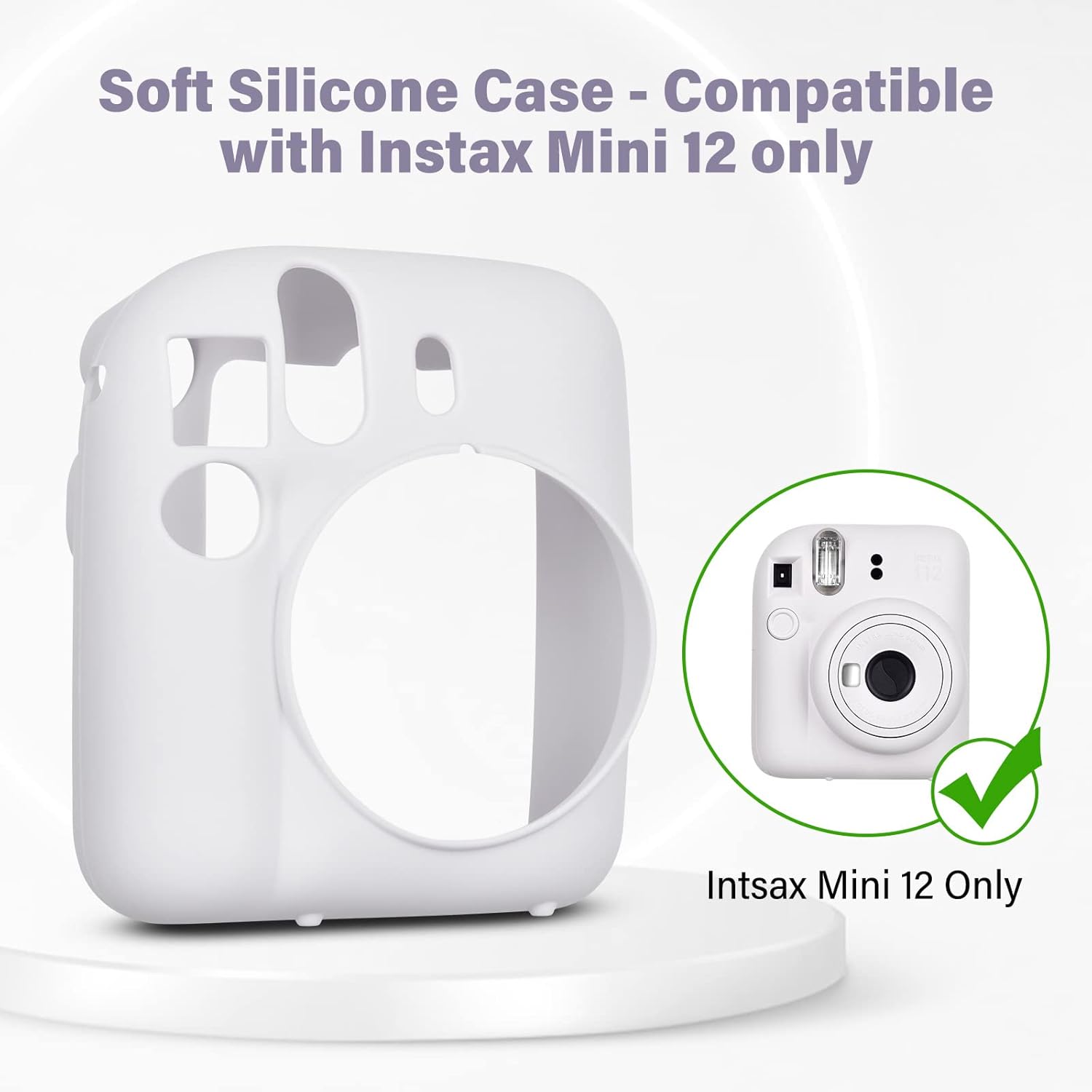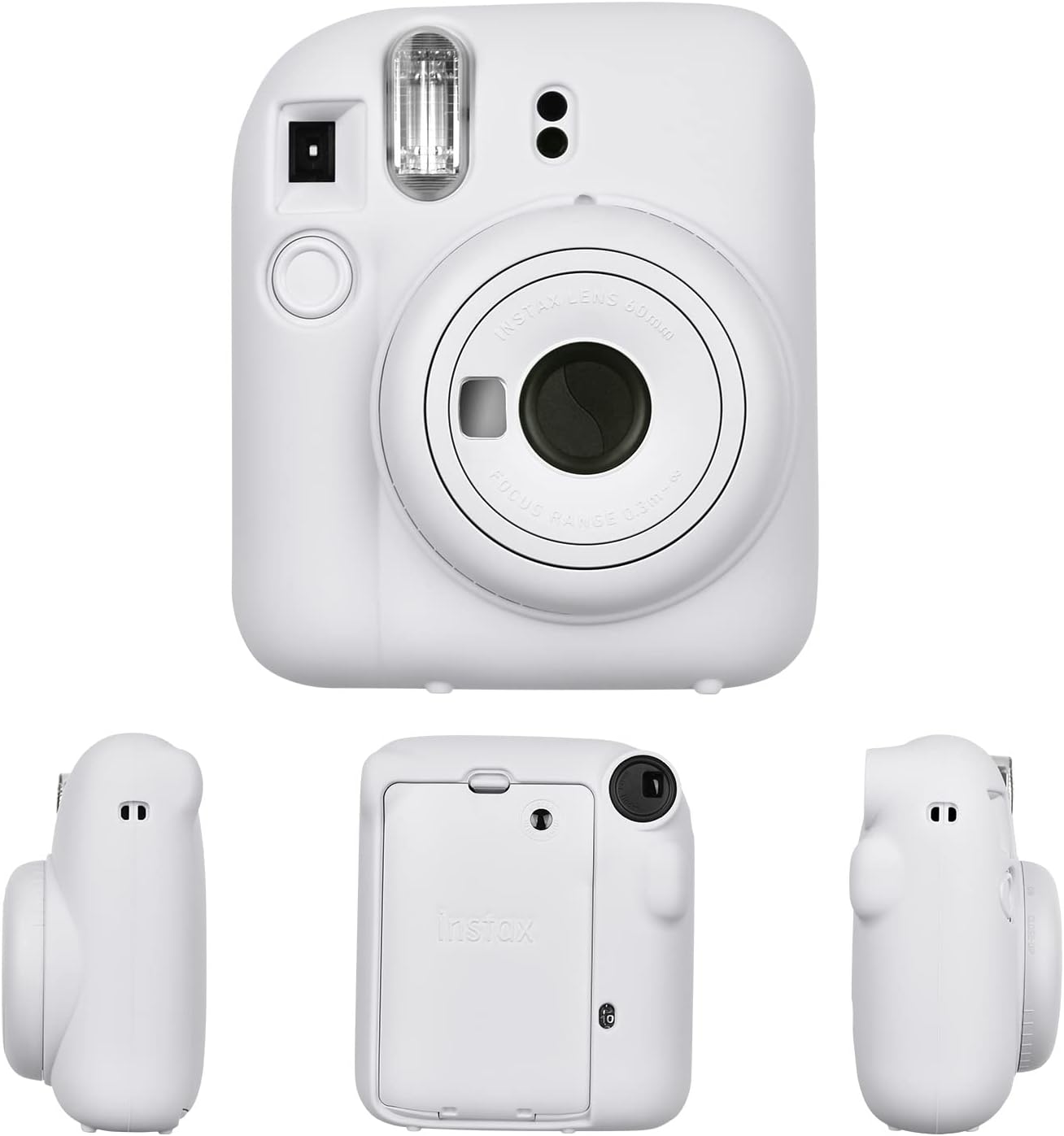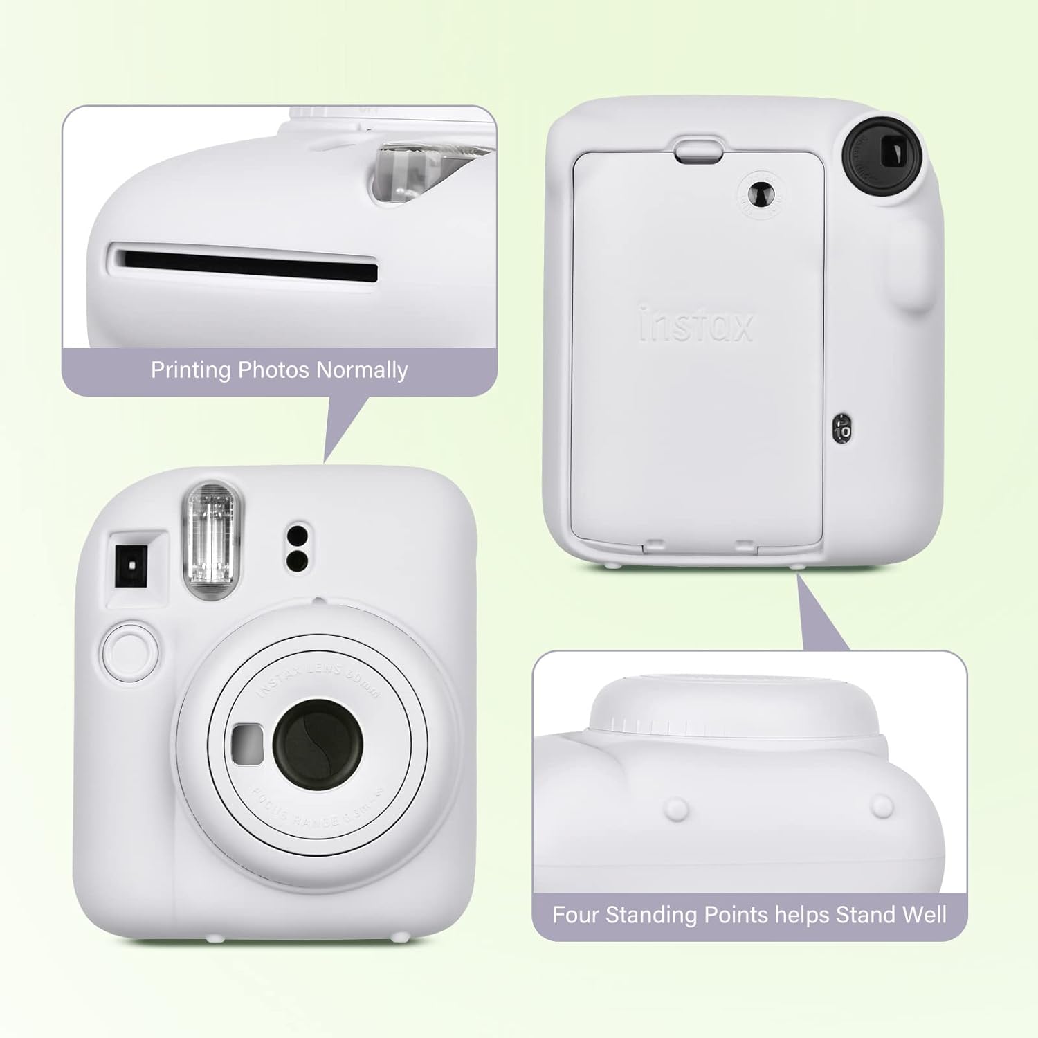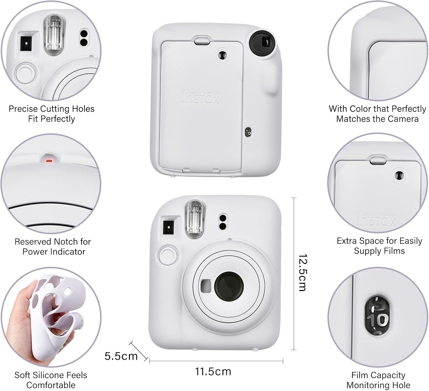 Fujifilm Instax Mini 12 Instant Camera Silicone Case |Protective Camera Cover with Adjustable Shoulder Strap | Clay White
