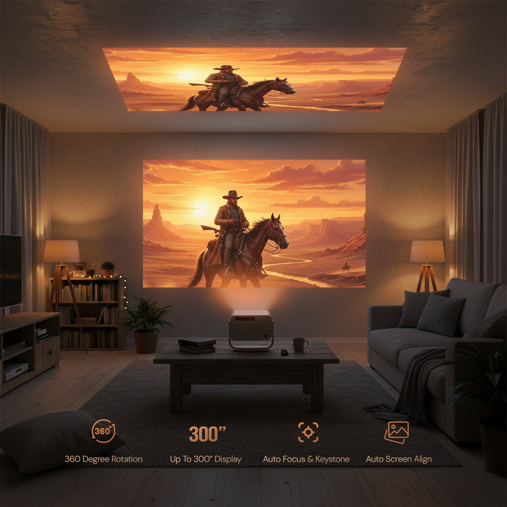 - ✅ Auto Focus & Auto Keystone Portable Projector : Smart portable projector with auto focus and automatic ±45° vertical keystone correction for fast image alignment. Digital zoom (100% / 75% / 50%) allows flexible screen adjustment without moving the projector. Easy setup mini projector for indoor and outdoor movie nights.