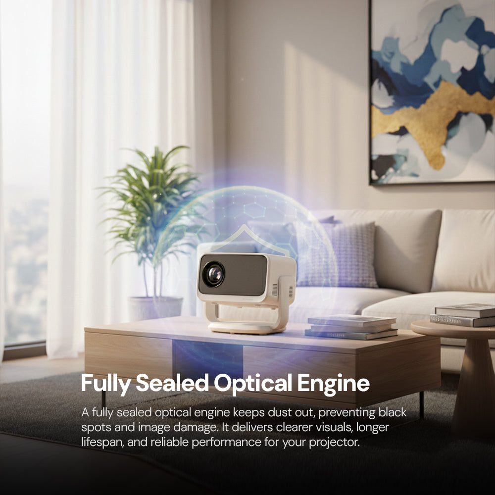 Smart FHD 4K Google TV Projector with Licensed Netflix, 600ANSI LUMENS Auto Focus & Keystone, Fully Sealed Design 40–250” Home Theater Projector with Built-in Speaker