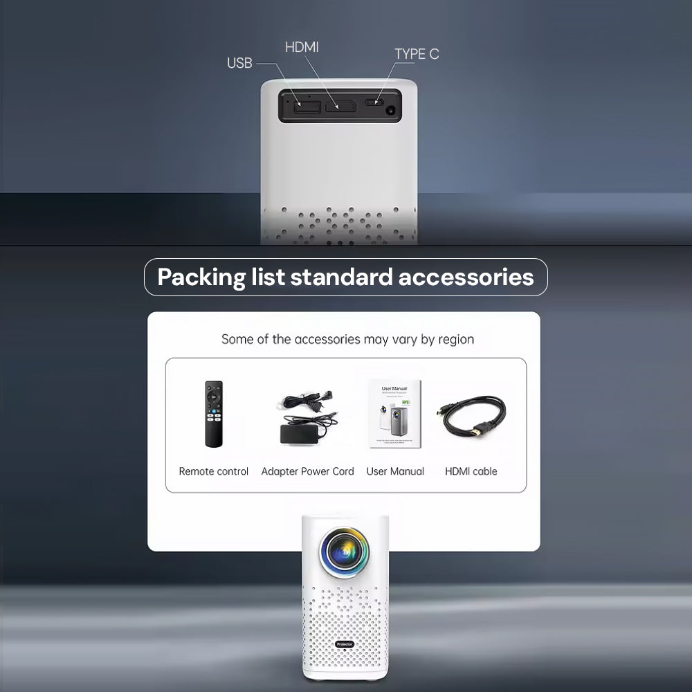 ✅ Multiple Connectivity Options – Type-C, HDMI, USB & Bluetooth – Wownect projector supports Type-C input, HDMI, and USB ports, allowing easy connection with smartphones, laptops, tablets, and gaming consoles. The Bluetooth 5.0 projector feature ensures seamless pairing with soundbars or headphones for a complete home theater experience.