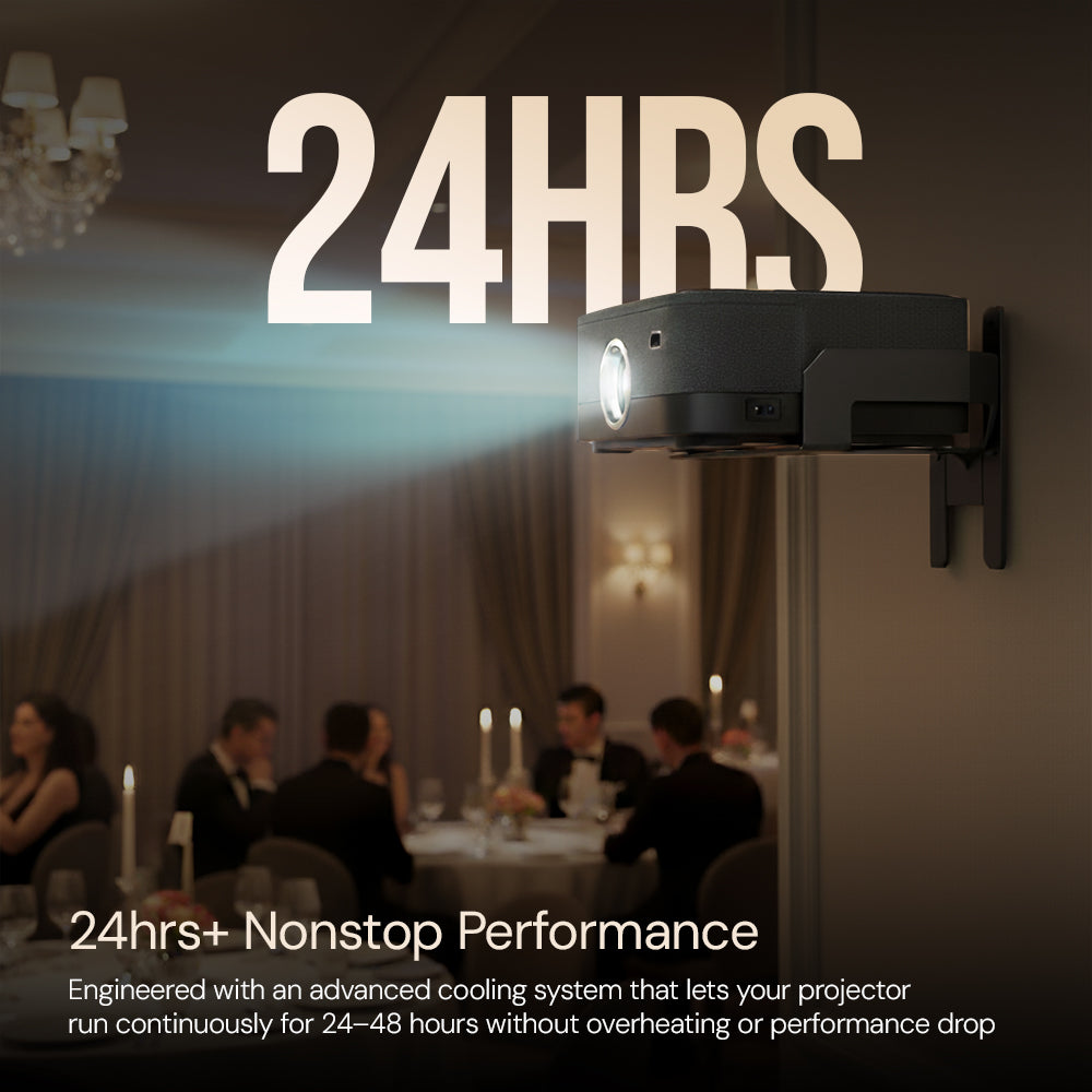 - ✅ Durable & Dustproof Projector for 24-Hour Nonstop Operation – Designed with a fully sealed optical engine, the Wownect H24 Max projector prevents dust entry for longer lifespan and consistent brightness. Built for 24-hour continuous operation, it’s perfect for education, digital signage, cafes, offices, or long event use.