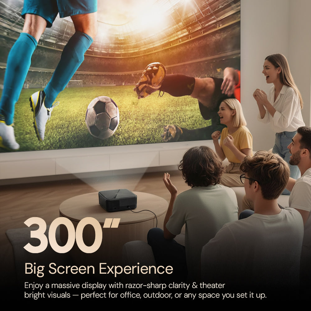 - ✅ Auto Focus & 6D Keystone Correction for Perfect Alignment – Advanced auto focus and ±40° 6D keystone correction ensure a perfectly aligned image from any angle. Designed with a 1.25:1 throw ratio, this short-throw projector delivers a 40–120” display from closer distances, ideal for small rooms or tight spaces.