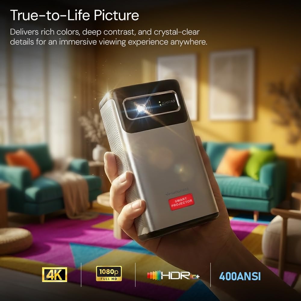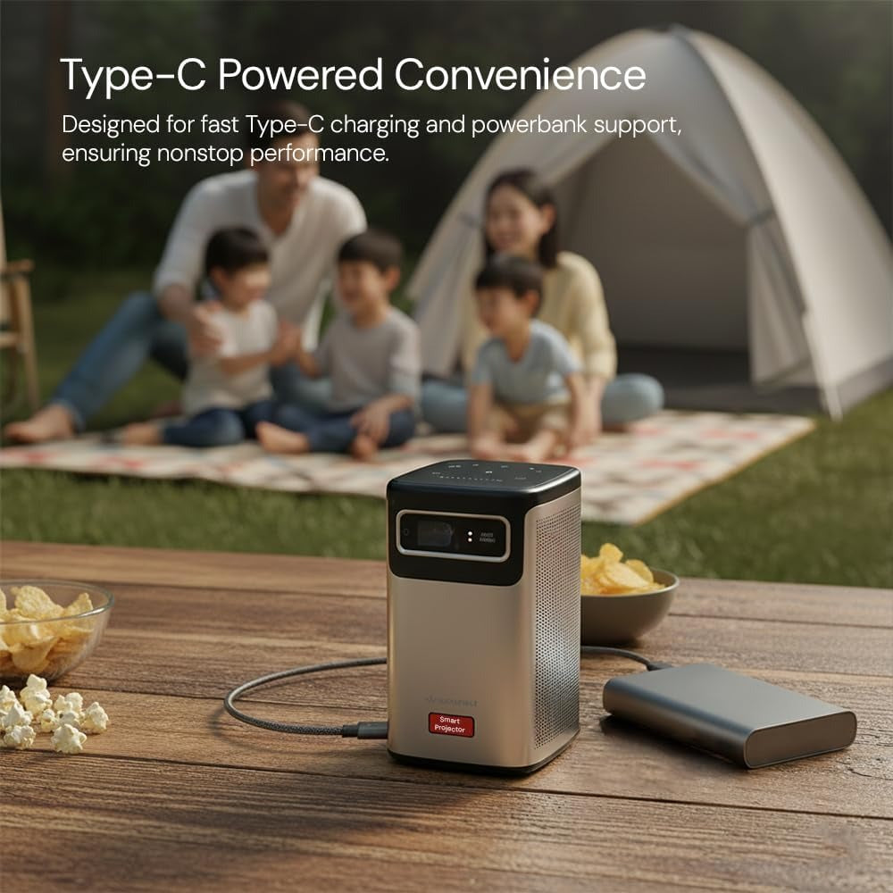 - ✅ Powerful 8000mAh Battery with Type-C Fast Charging: Enjoy wireless big-screen entertainment anywhere with the built-in 8000mAh rechargeable battery, offering up to 2.5 hours of playtime. The Type-C PD fast charging feature ensures quick recharge and stable power, making it perfect for travel, outdoor movie nights, or presentations on the go.