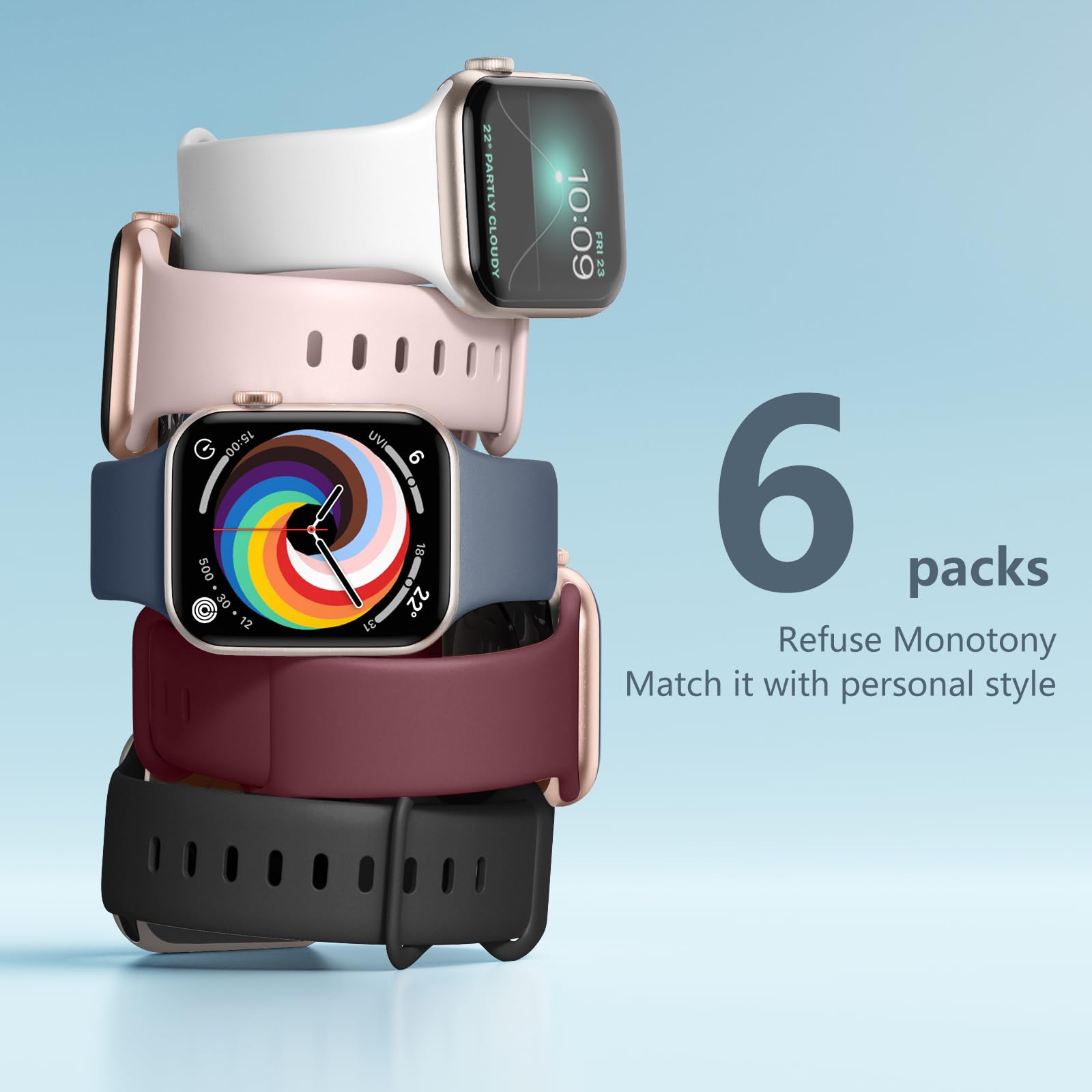 38/40/41/42mm (Pack of 6) Silicone Sport Bands For Apple Watch Series 10 | 9 | 8 | 7 | 6 | SE | 5 | 4 | 3 | 2 |1- Multicolor1