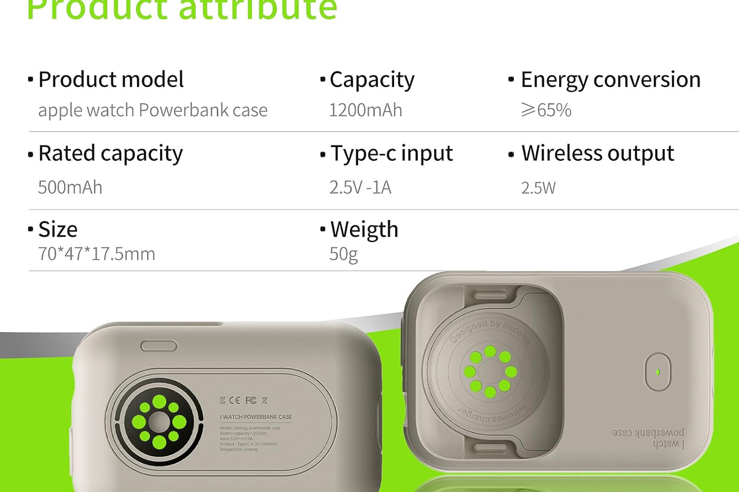 O Ozone Portable Apple Watch Charger – 1200mAh Wireless Power Bank Portable Power On the Go This compact and lightweight Apple Watch charger is designed for easy transport and convenience, making it ideal for travel, outdoor adventures, or daily use. Equipped with a built-in 1200mAh battery, it provides 1 to 1.5 full charges—delivering up to 150% extra battery life in emergencies. Fully charges your Apple Watch in approximately 2.5 hours. Fast Charging for iWatch Engineered for quick and efficient power delivery, this charger ensures your Apple Watch is ready when you are. With a recharge time of just 1.5 hours, the power bank is perfect for users with busy lifestyles who need fast, reliable charging anytime, anywhere. Wear While Charging Designed with practicality in mind, you can continue wearing your watch even while it’s charging via this portable power bank—no need to pause your day. Wide Compatibility Made from durable ABS plastic and soft-touch silicone, this compact charger is compatible with Apple Watch Series 9, 8, 7, 6, 5, 4, 3, 2, Ultra 2/1, in all sizes: 49mm, 46mm , 45mm, 44mm, 42mm, 41mm, and 40mm. *Note: Not compatible with other smartwatches, phones, or AirPods.* Travel Essential Its small size and wireless design make this charger a perfect travel companion. Whether you're at home, in the office, or on the road, it’s easy to store, carry, and use wherever you go. What’s Included 1× Portable Apple Watch Charger