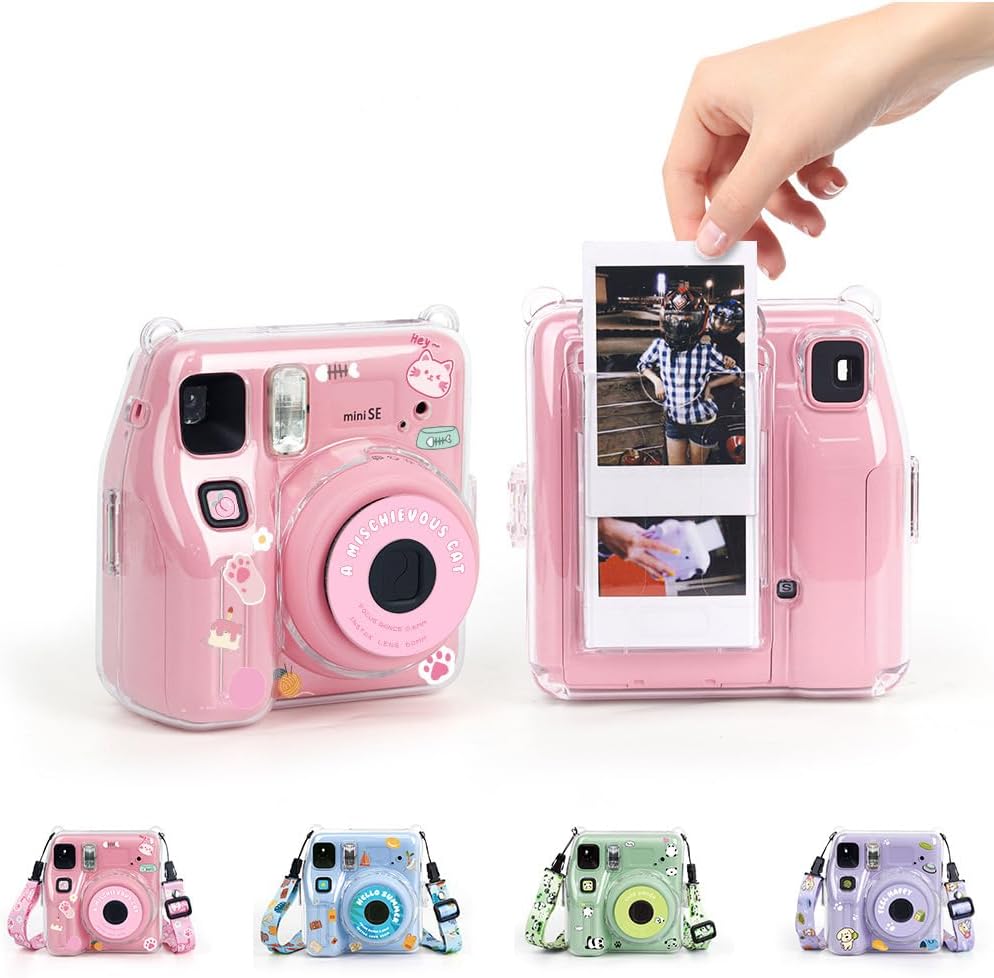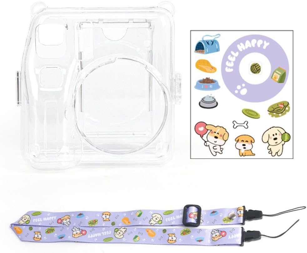 O Ozone Protective Clear Case for Fujifilm Instax Mini SE Instant Camera - Crystal Hard Shell Cover with Upgraded Film Pocket for Storing Photos + Cute Sticker & Removable Shoulder Strap Features: • Clear case is compatible for Instax Mini SE. Crystal clear view design to show off the natural beauty of your camera and your elegant taste. • The camera case has a storage compartment for 10 photos storage, which is convenient for temporary storage of photos when taking pictures. • Made of quality PC material, durable and wear-resistant. The protective cover provides full protection for Mini SE camera, anti-scratch, dust-proof and shockproof. • With colorful shoulder straps, the length can be adjusted as needed, easy to carry out. Also comes with sticker, very lovely and delicate. • Hole position 1:1 correspondence, to protect the camera at the same time does not affect the use of the camera, easy access to all controls. Specifications and Details • Style: Clear Case with Photo Holder • Material: PC • Type: Camera Case • Compatibility: Fujifilm Instax Mini SE. What's in the box? • 1 x Photo bag crystal shell • 1 x Shoulder strap