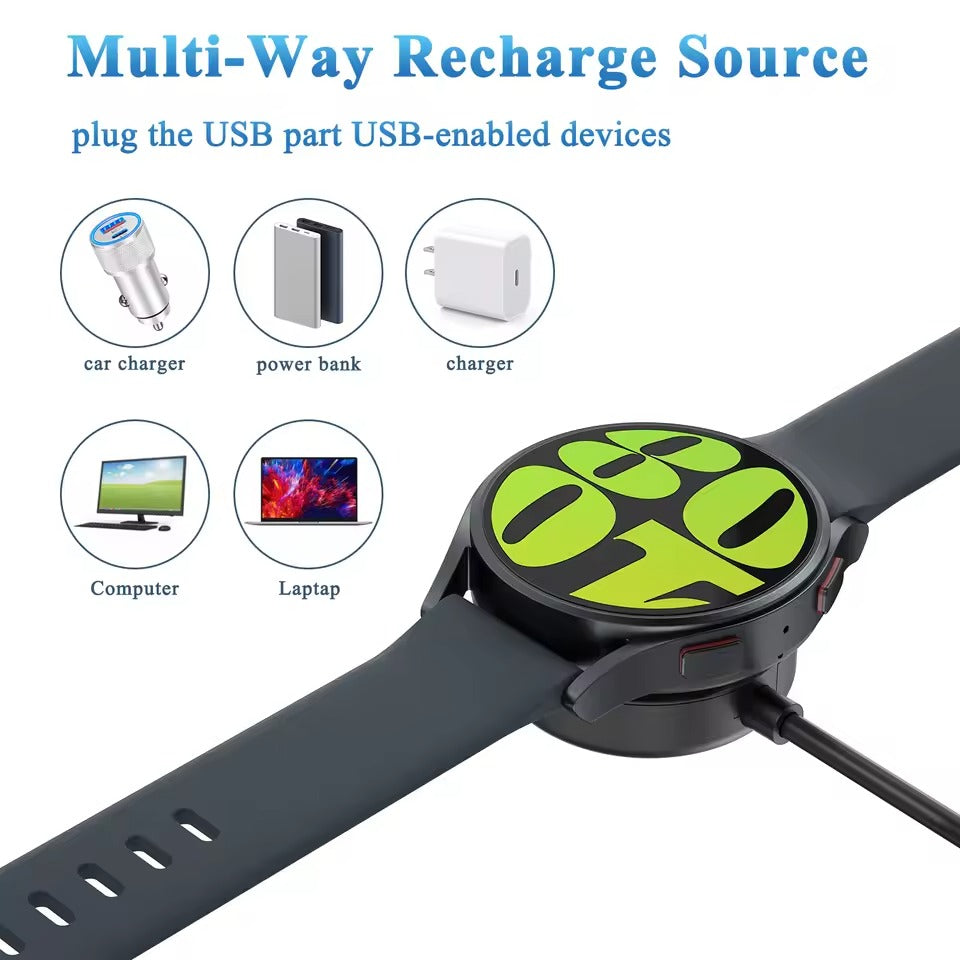 Wide Compatibility – Designed for multiple models including Watch 7 (40mm/44mm), Watch 6/6 Classic (40mm–47mm), Watch 5/5 Pro, Watch 4/4 Classic, Watch 3 (41mm/45mm), Active 2 (40mm/44mm), and Active (40mm). Supports models like SM-R860, R870, R880, R890, R840, R850, R500, and more. Safe & Fast Magnetic Charging – Features a strong built-in magnet for easy alignment and stable wireless charging. Voltage regulator and protection circuit ensure fast, safe charging with consistent performance. Durable TPE Material – Made with high-quality TPE cable tested for over 6,000 bends. Scratch-resistant, flexible, and built to last—ideal for everyday charging at home, office, or travel. All-in-One Charging Dock – Functions as both a charging cable and a data sync stand. Combines form and function with a polished surface and anti-slip base for better protection and usability. Compact & Travel-Friendly Design – Lightweight and portable charging solution. Easy to store in your bag, backpack, or desk—perfect for travel, workouts, and daily use.