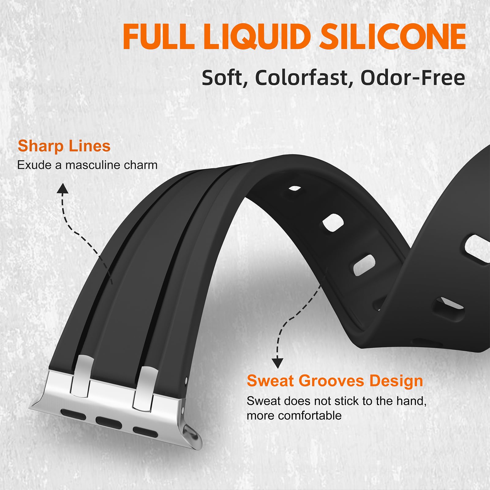 • The liquid silicone rubber sport bands for apple watch band are compatible with Apple Watch Ultra 49mm, Apple Watch Series 8 Series 7 45mm, Apple Watch Series 6/5/4/SE 44mm, Apple Watch Series 3/2/1 42mm.