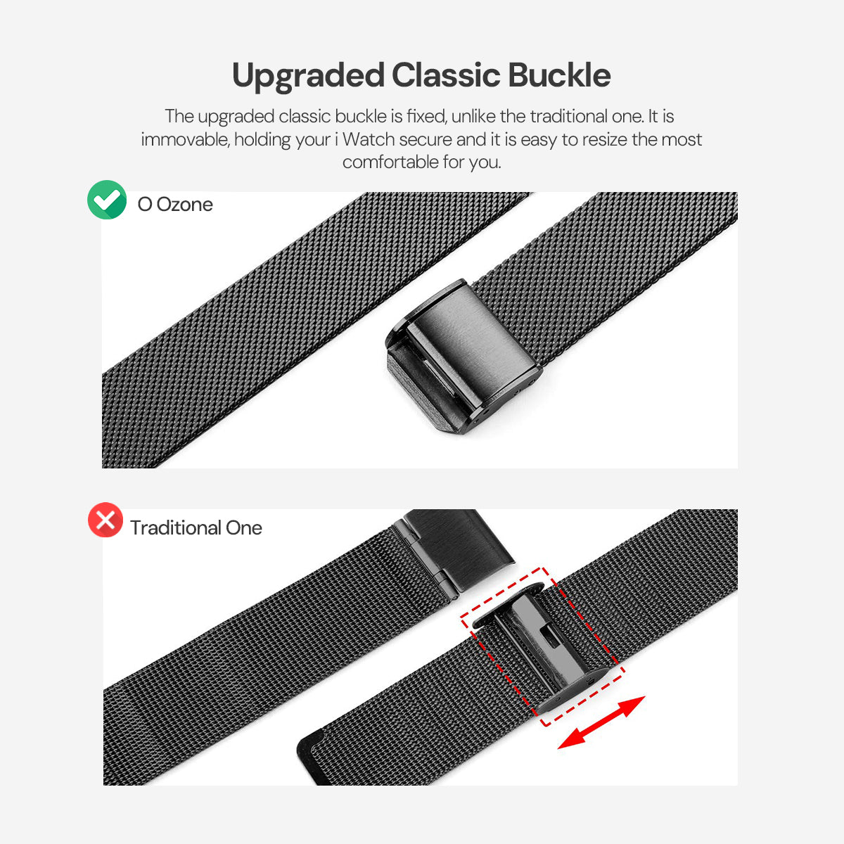 O Ozone Slim design metal band for Apple watch 38mm 40mm 41mm 42mm are made of durable and hypoallergenic nickel free 316L Stainless Steel with classic buckle, prevents skin from irritation.