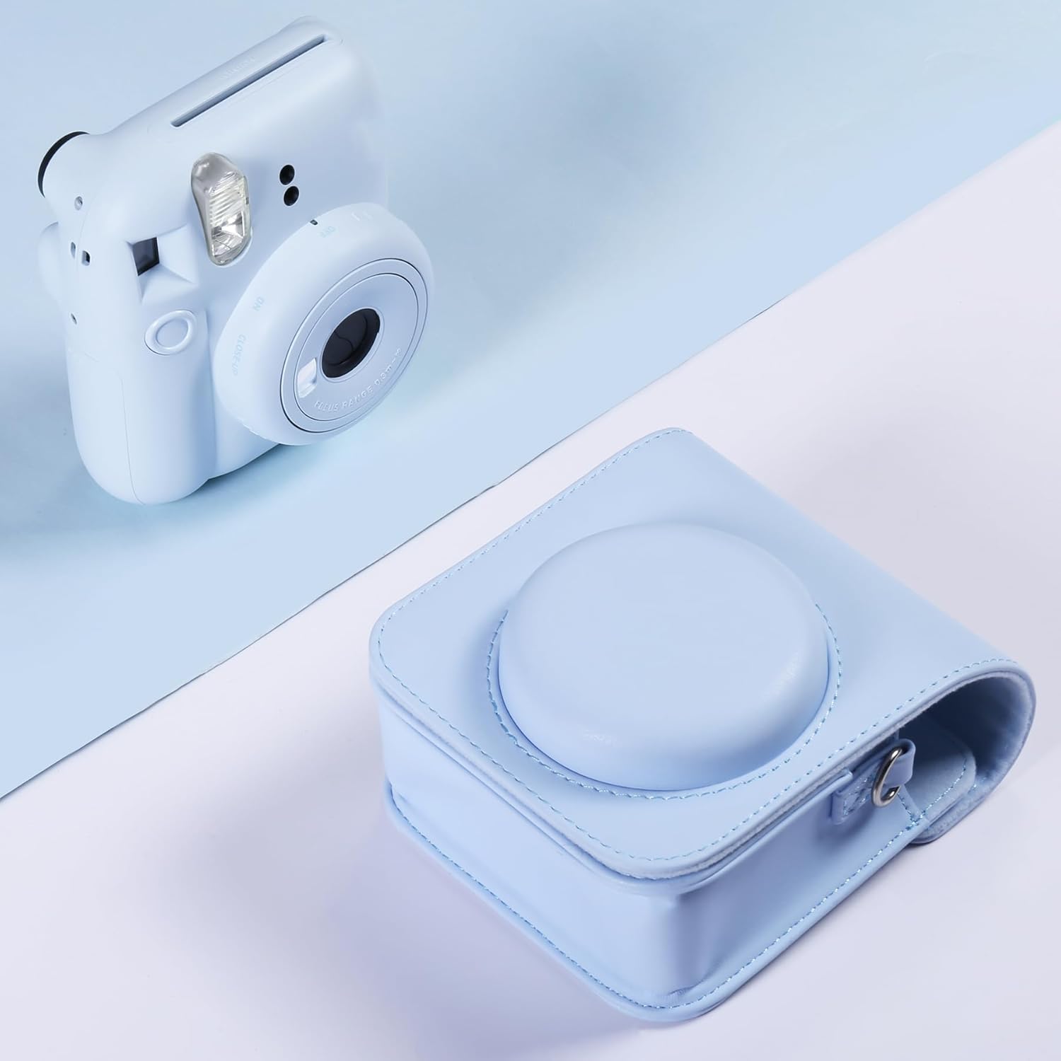 Protective Case for Fujifilm Instax Mini 12 Instant Camera| PU Leather Camera Carrying Bag Cover with Adjustable Shoulder Strap With Mini Photo Album 64 Pockets | Blue