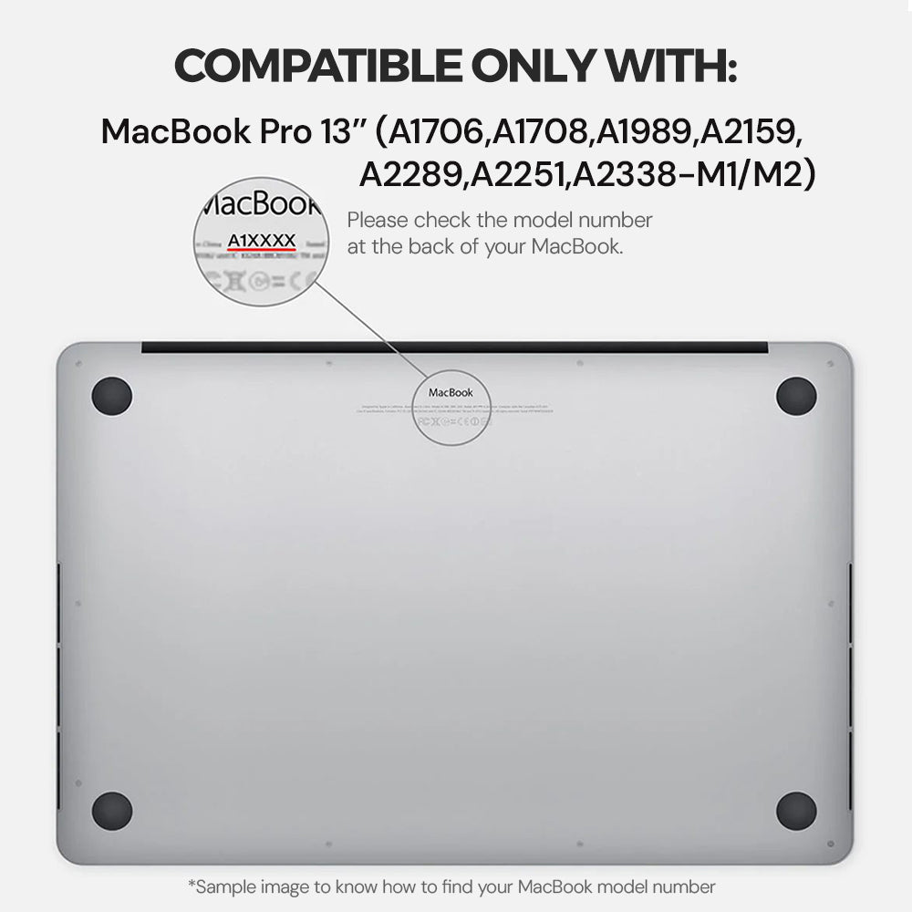 Perfect fit for MacBook Pro 13 inch models (2016, 2018-2020) with Retina Display and Touch ID.
