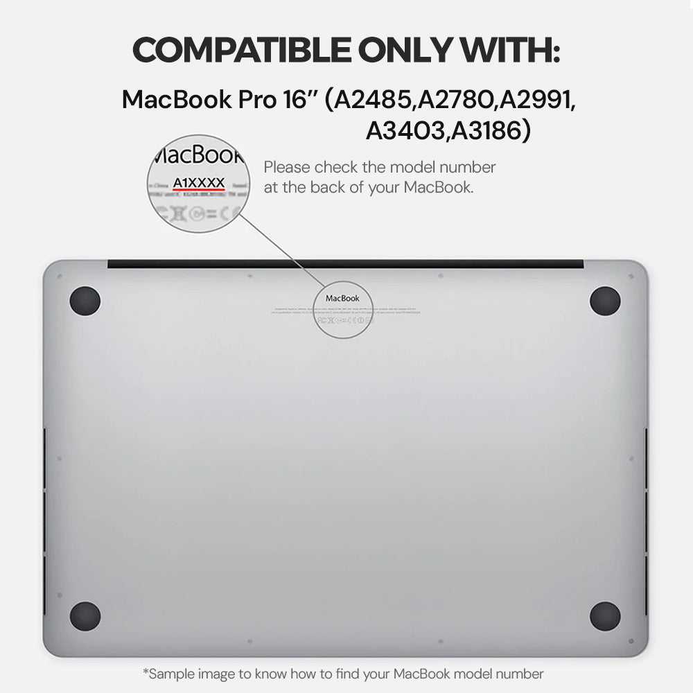 Perfect fit for MacBook Pro 16 inch models (2021-2024) with Retina Display and Touch ID.